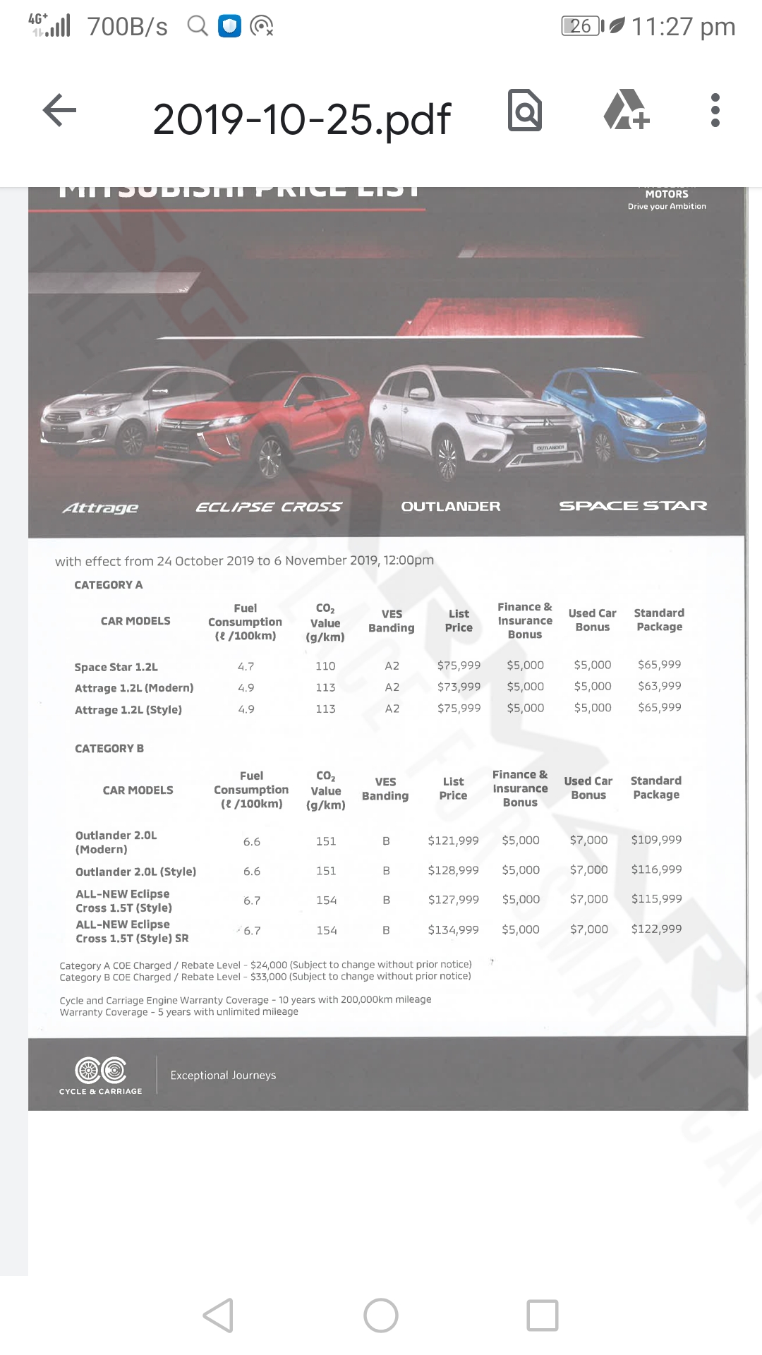 话说回来如果可以的话在等一两期现在经济不好,买车人不多,价格很可能会逐步调低,好像去年coe最低28k的时候欧兰德价格掉到了99k