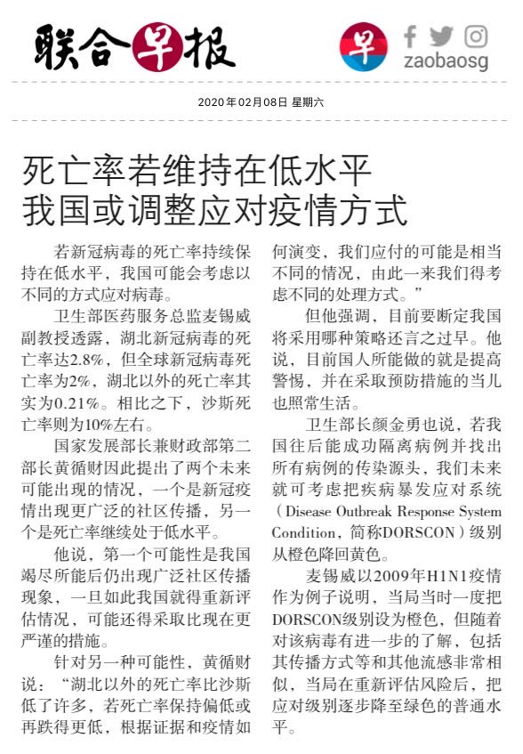 看看广东浙江的数字,重症率都在10%左右。按新加坡的人口,这个病一旦扩散开,本地有足够的重症病房吗?