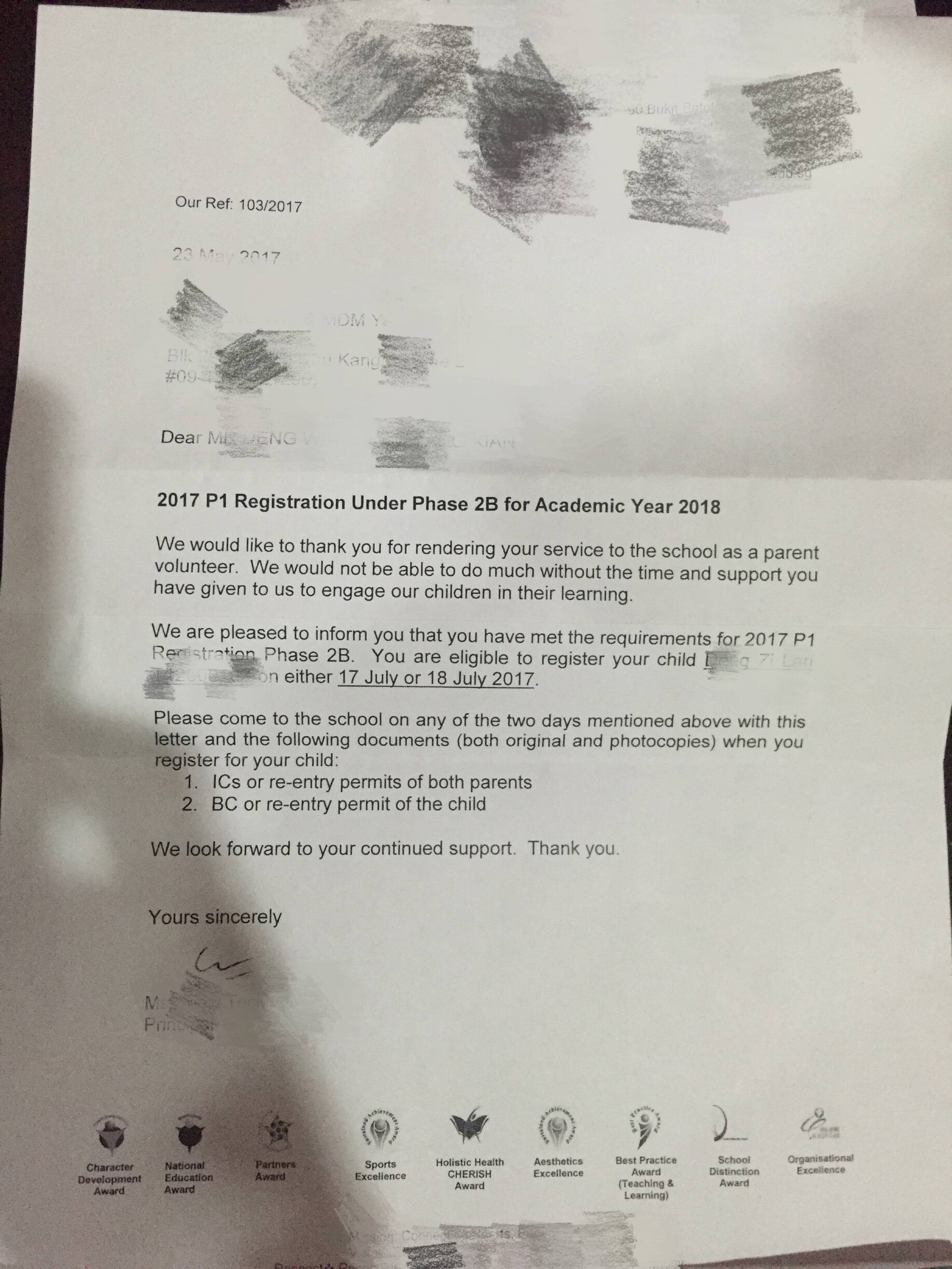 祝贺啊来自一个小一phase 1已交完报名申请的家长。
