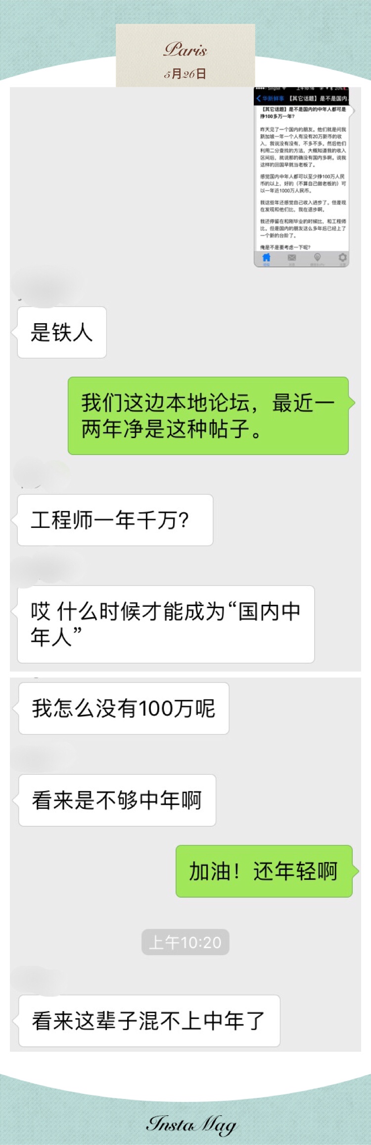 楼主这逻辑+1朋友跟你打听工资,说你的没国内高,结果就被你“感觉”到国内中年人年入百万甚至千万。。。。。也是没谁了。楼主是中年人吗?不然跟中年人比什么?