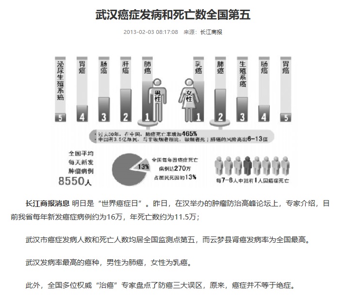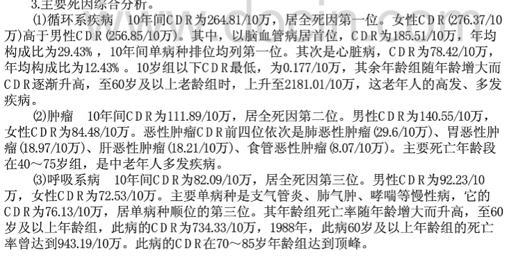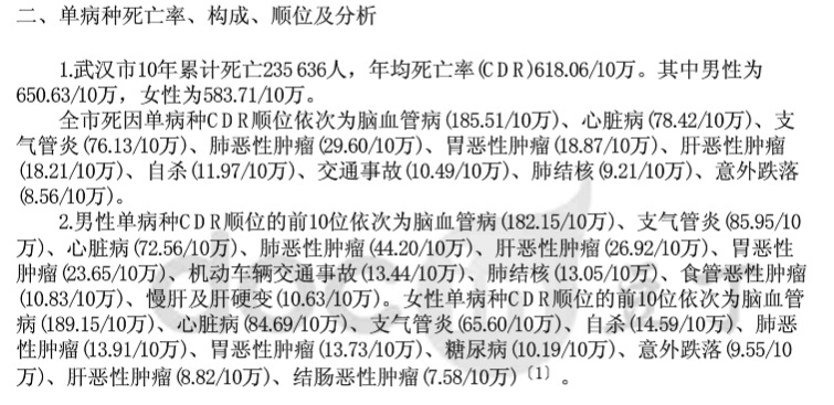 随便搜下论文,数字都比新肺高武汉市2009年伤害死亡的流行特征和疾病负担,为制定伤害预防控制策略和措施提供科学依据. 方法:采用粗死亡率、标化死亡率、潜在寿命损失年、标化潜在寿命损失年、潜在工作损失年等指标对武汉市2009年居民病伤死亡监测资料伤害死亡数据进行分析. 结果:2009年武汉市伤害的粗死亡率为45.50/10万,标化率为33.01/10万,男性(54.77/10万)明显高于女性(35.77/10万),农村(49.66/10万)明显高于城市(42.63/10万),伤害死亡的主要原因依次是交通事故、溺水、跌落、自杀、意外中毒和他杀,0~岁人群伤害的主要死因是溺水,15~岁人群则是交通伤害,65岁及以上人群则以跌落为主,其次为交通事故和自杀.因伤害导致的YPLL,SYPLL和WYPLL分别为73 470年、84 734年和50 073年,分别占全死因的24.01%、30.36%和31.62%,远远高于伤害占全死因的比例7.46%. 结论:伤害是导致"早死"和寿命损失的重要疾病负担,由于伤害死亡带来的社会和经济损失应引起相关卫生部门更多的重视,根据伤害的死亡谱和危险人群制定有效的防控措施.最大限度的减少伤害所致的死亡与残疾.