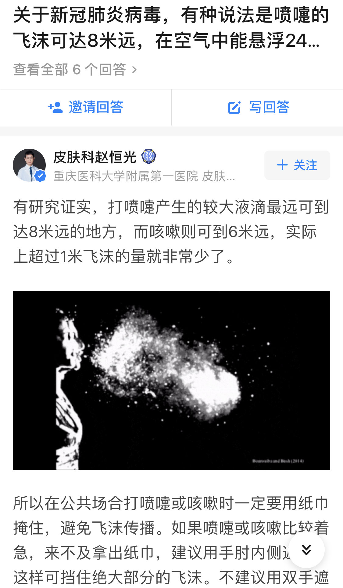 划重点,抛开当量讲毒性是不科学的。所以飞沫传播有效的量和距离在一米以内,说两米的是加了个buffer。另外,呼吸道病毒比较大,因此不会存在于那些特别小的喷的相对远的颗粒。