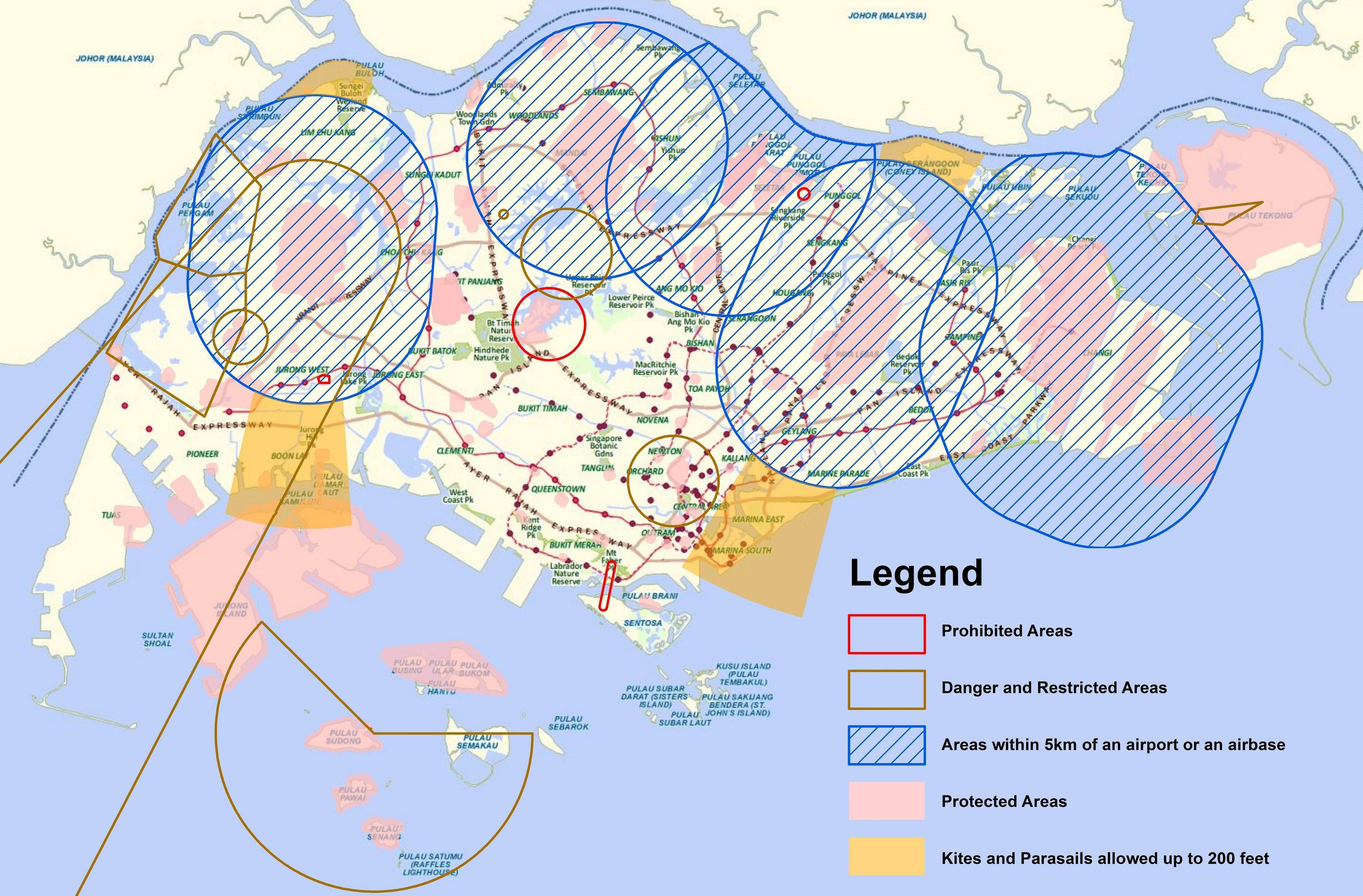 是的有一张drone能飞的区域图https://www.caas.gov.sg/public-passengers/unmanned-aircraft-systems/area-limits