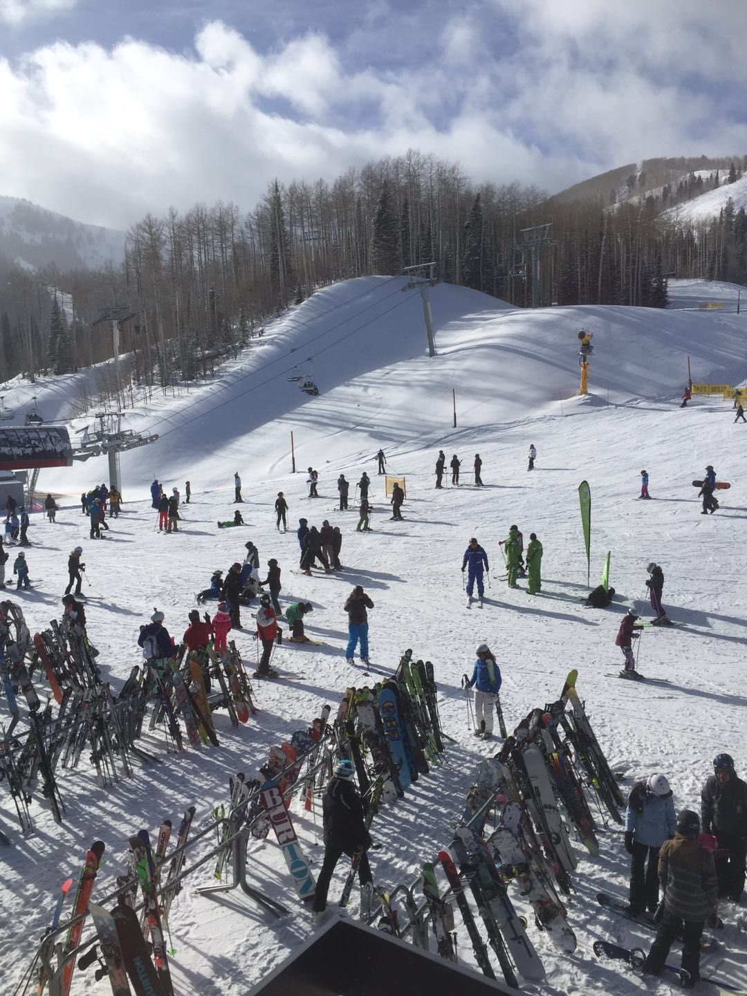 坐gondola 到山脚下 -> 教学区有magic carpet -> 坐 chair lift 上顶滑下来。 $38/day unlimited ride of chair, $26/day unlimited ride for senior aged people. 有各地滑雪信息的朋友也欢迎给大家分享信息。