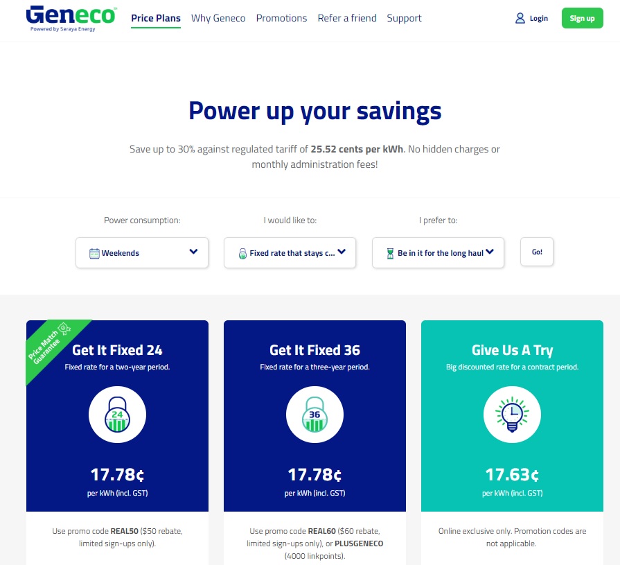推荐Geneco 24个月签了Geneco的24个月的,每度电17.98分,第一个月还有20.19%off,oub卡还bill有rebate,感觉还不错,用refer code还可以扣20块哦!