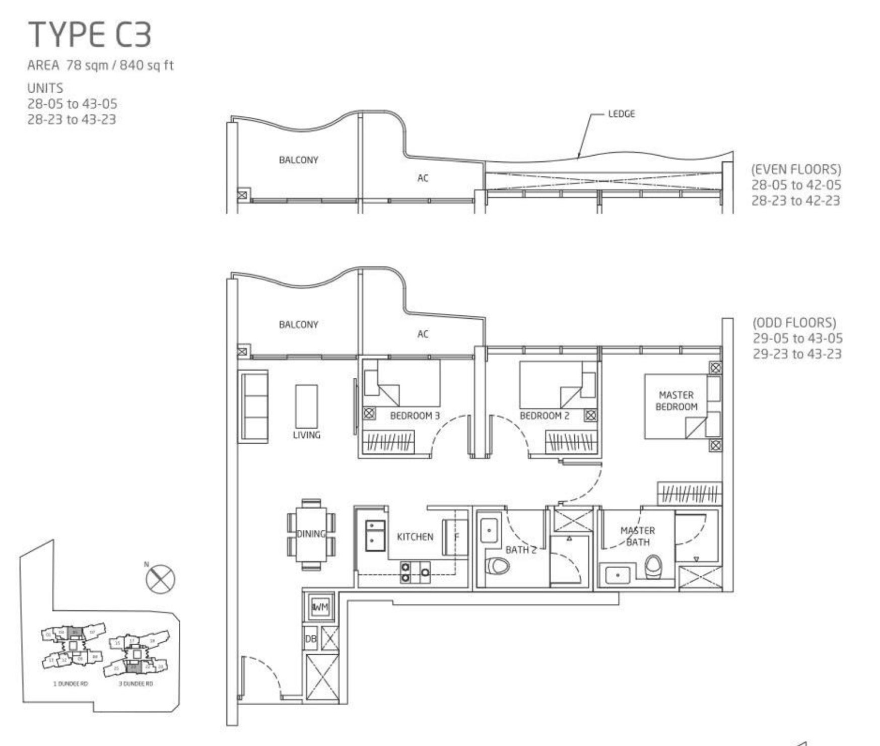Queens peak 三房单位 78平方米 164万起 尺价1954 最后8间