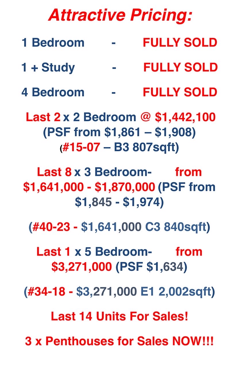 这个是The crest 目前的销售随着周边新项目的推出,她的尺价目前算起来是比较便宜的,现在剩下的选择比较有吸引力的 是四房的Villa。:)