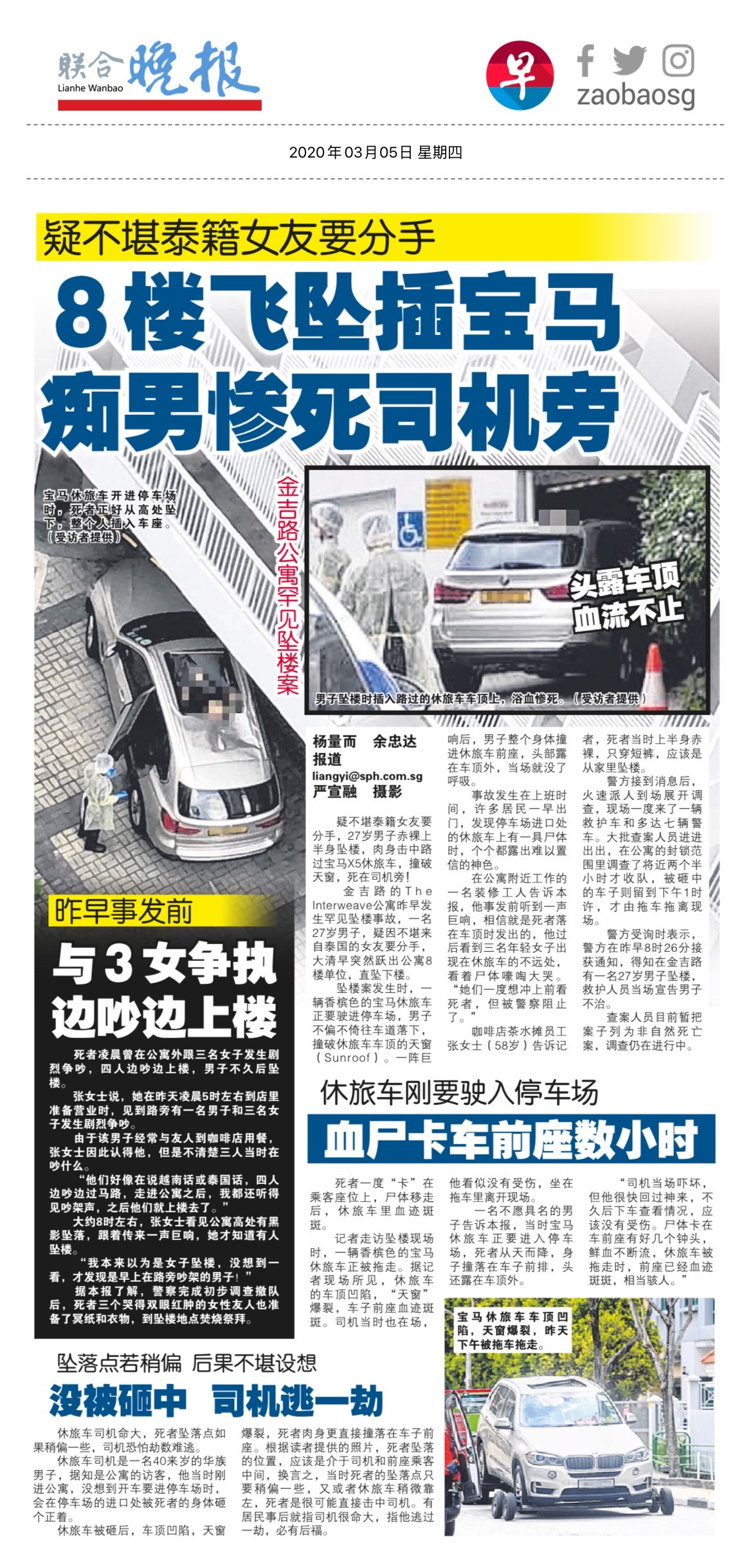DengWei • • 14749 次浏览我要是这个司机,会有心理阴影的,好好开着车,结果天上掉了来两个腿和半个身子,就在自己左手旁边。