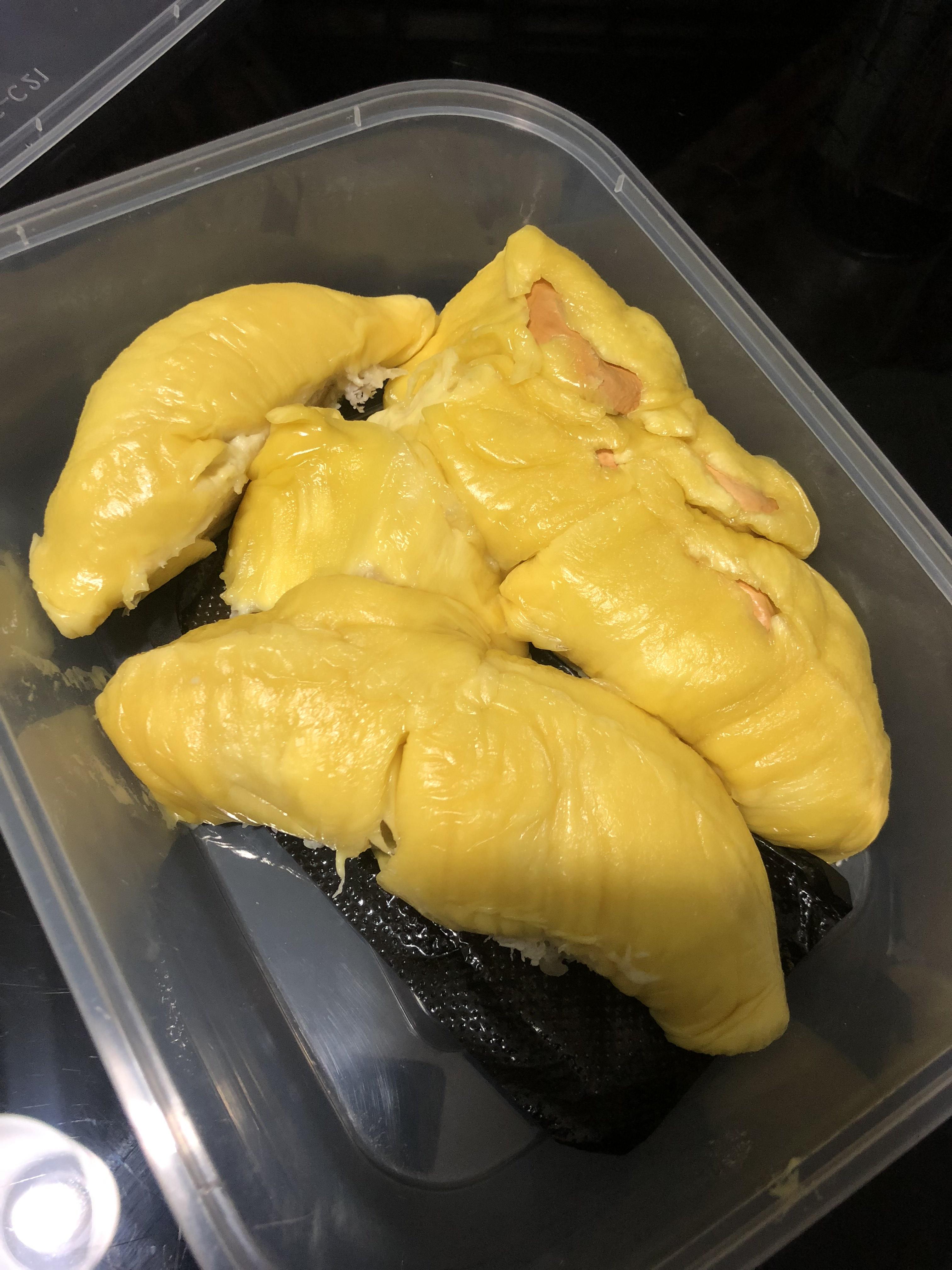 刚吃了一盒,还不错,苦的,香,成熟。老实说,觉得都挺好吃,吃不出和猫山王的区别来。(队友说有区别,然而我比他吃过的猫山王多得多)。