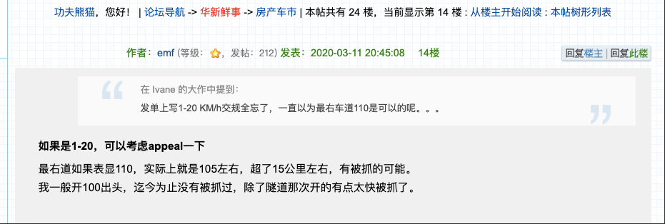 如果是1-20,可以考虑appeal一下最右道如果表显110,实际上就是105左右,超了15公里左右,有被抓的可能。