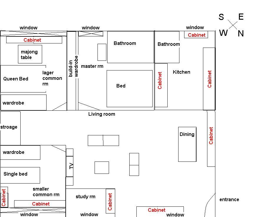 不关朝向的事是吗 亲来帮我看看手绘floor plan目测一下主卧真心要吐槽 躲在厕所后面 没风 没光 。。。