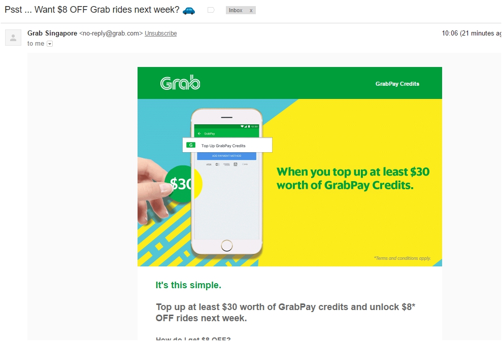 这个只有一年的有效期我刚充了发现明年这个时候过期,所以要抓紧用啊,不然就白白送给grab了。