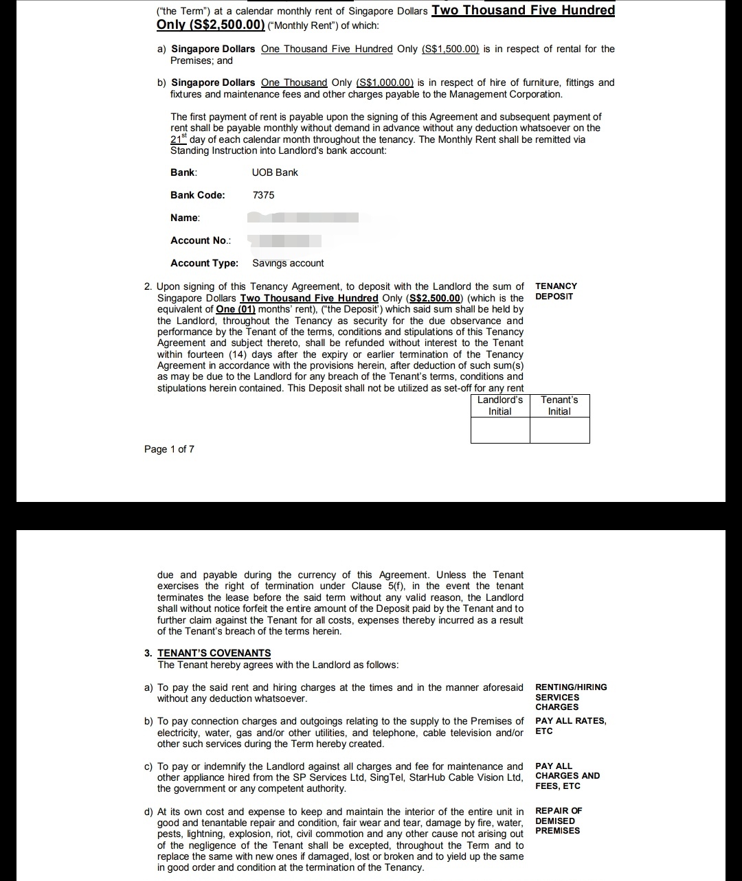 另外,制式合同里面应该有超过7天未缴纳房租按照10%的年利息收利息,这些之前拖欠的都可以算一下发去小额赔偿厅,如果要恶心对方的话几十新币欠债也可以去告他,就是准备材料和证据有点麻烦。至于剩余7个月的租金你是要不回来的。 -