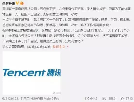 雄关漫道 • • 38442 次浏览近日,国信证券(香港)经纪有限公司高级副总裁谢开聪,微博曝光了腾讯的加班制度,