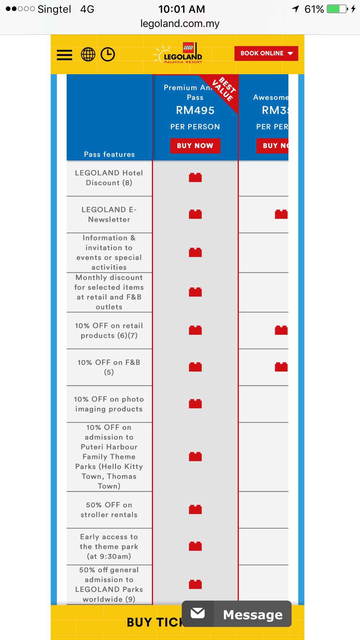 2. 持年卡给同行者买票享有30% OFF,而不是50%,50%那个是指除了马来西亚的其他地区的LEGOLAND