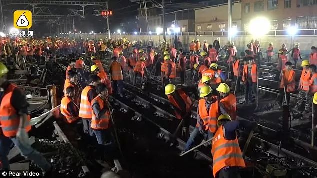 ▲这就是高铁速度!1500名中国工人为新车站铺设铁路,仅用时9小时!(via Daily Mail)