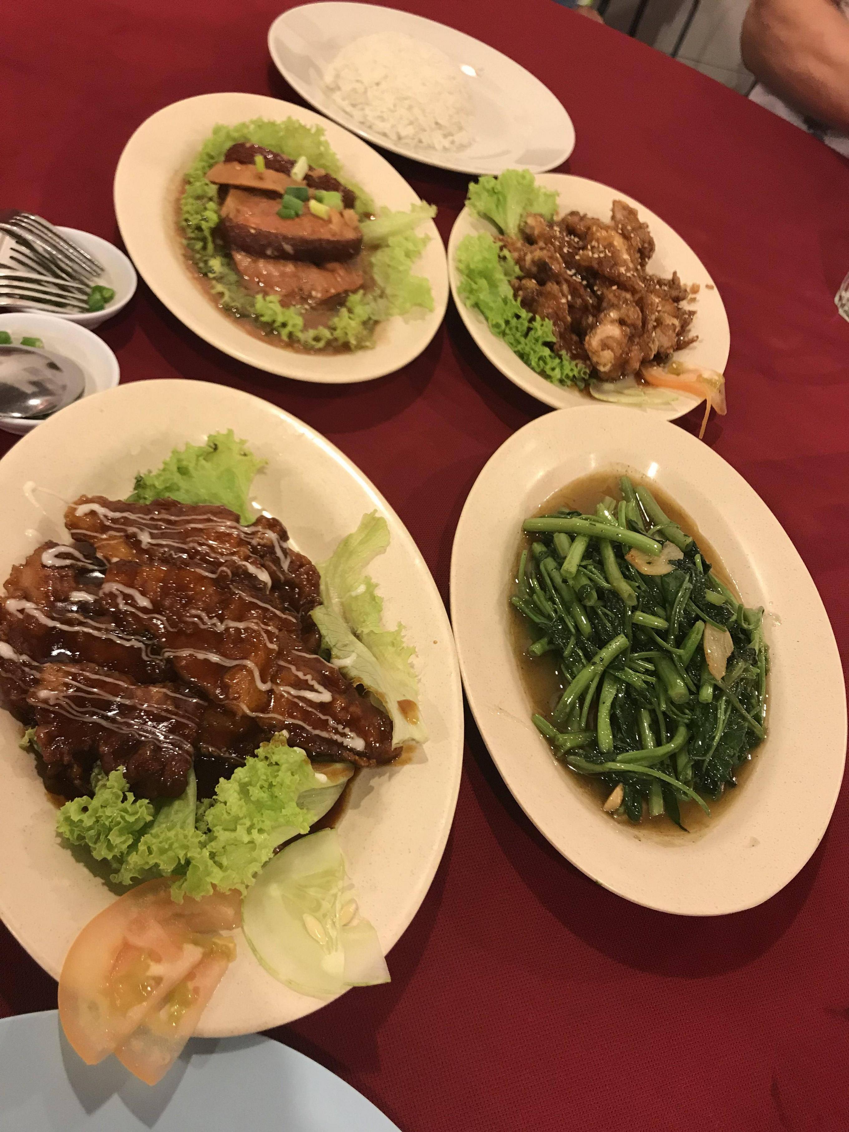 一共四个菜加一个豆蔻水和两杯白水加起来才76令吉。。。算是很便宜了。。。很多菜没有了,而且老爸不能吃海鲜很多海鲜也不能点。。。
