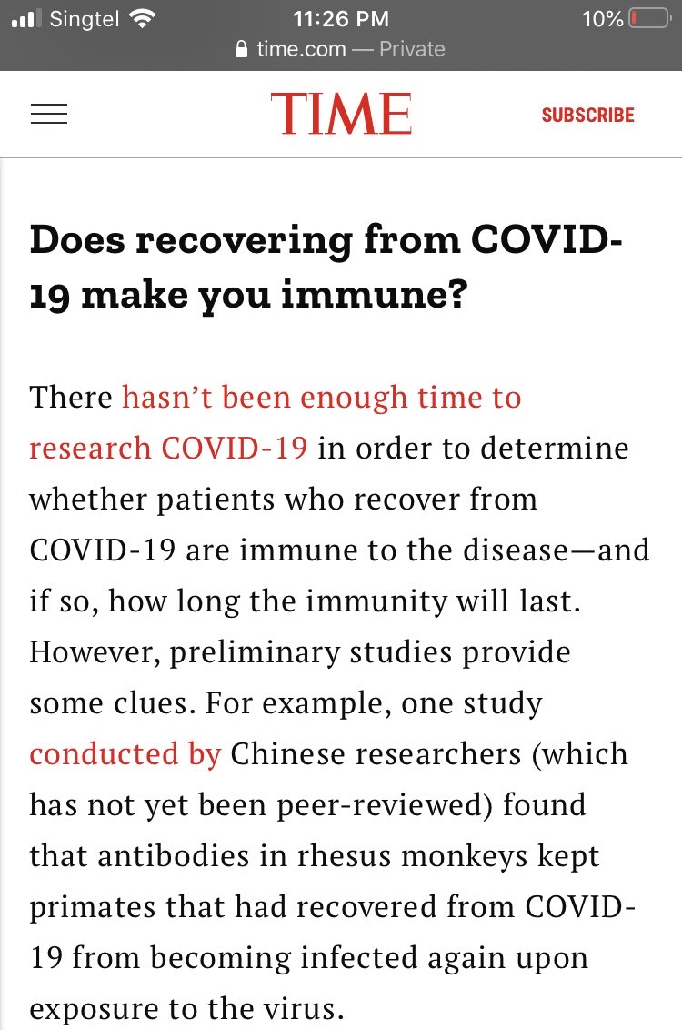 比如目前新冠康复的,至少短期内会有抗体(这是坡县可以创世界第一,血清抗体检测确定传播链的基础),能维持多久并不知道。