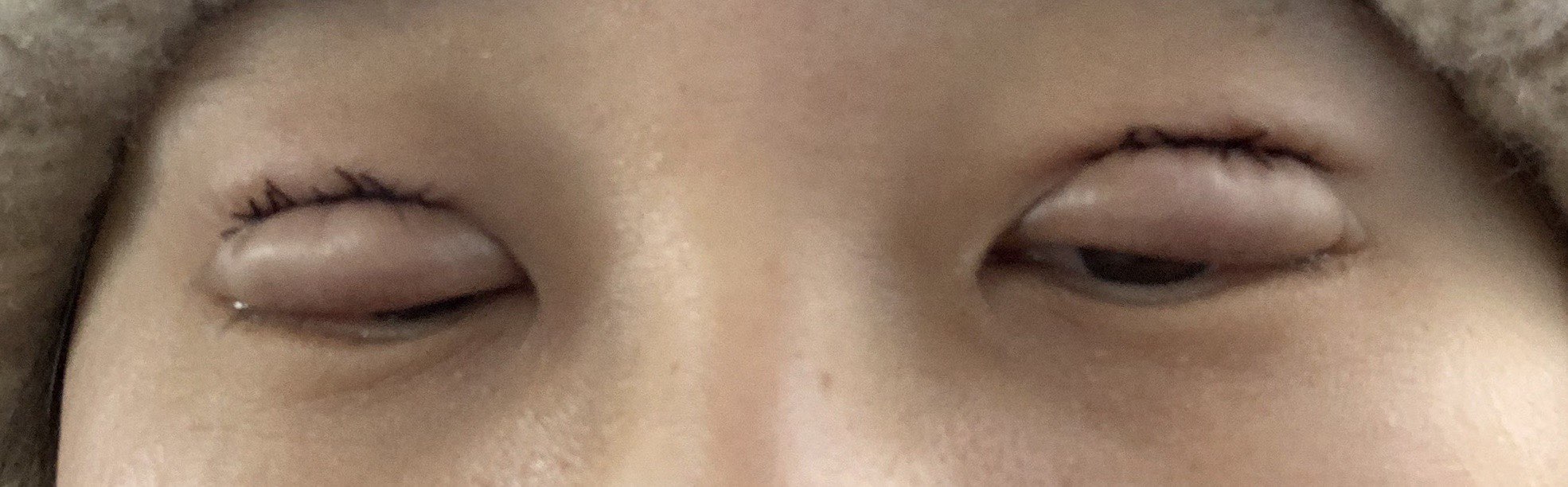 大家不要只被美好的成果图吸引了放一张我刚缝完的照片你们就知道过程是多惨烈了。眼睛几乎是肿的睁不开的,我图片里已经在努力睁眼了。所以别说出门了,这个样子在家里自己看自己都很吓人。一定要找人陪同,刚做完后是最肿的,要想一个人回家是不太现实的。