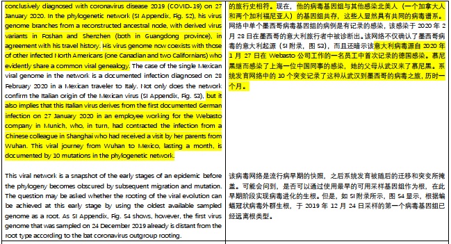 福斯特表示,他的研究推测新冠肺炎的首例感染病例发生在2019年9月13日到12月7日之间。因此2019年12月24日从武汉采样的病毒基因组不能准确地表明病毒起源。