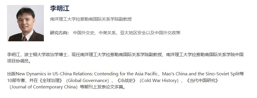 新加坡南洋理工大学拉惹勒南国际关系学院副教授李明江, 有人了解他吗?