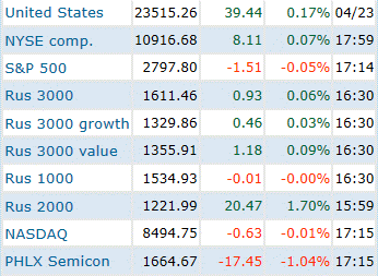 (早报讯)美股周四(23日)上涨。道指涨208.09点,或0.89%,报23683.91点;纳指涨61.09点,或0.72%,报8556.47点;标普500指数涨18.37点,或0.66%,报2817.68点