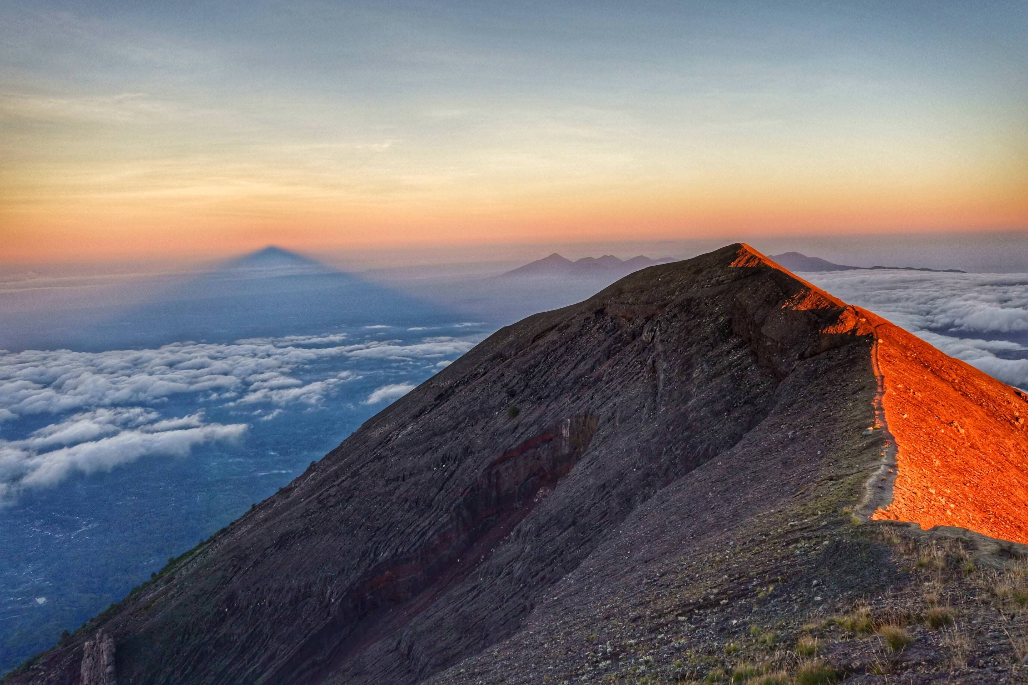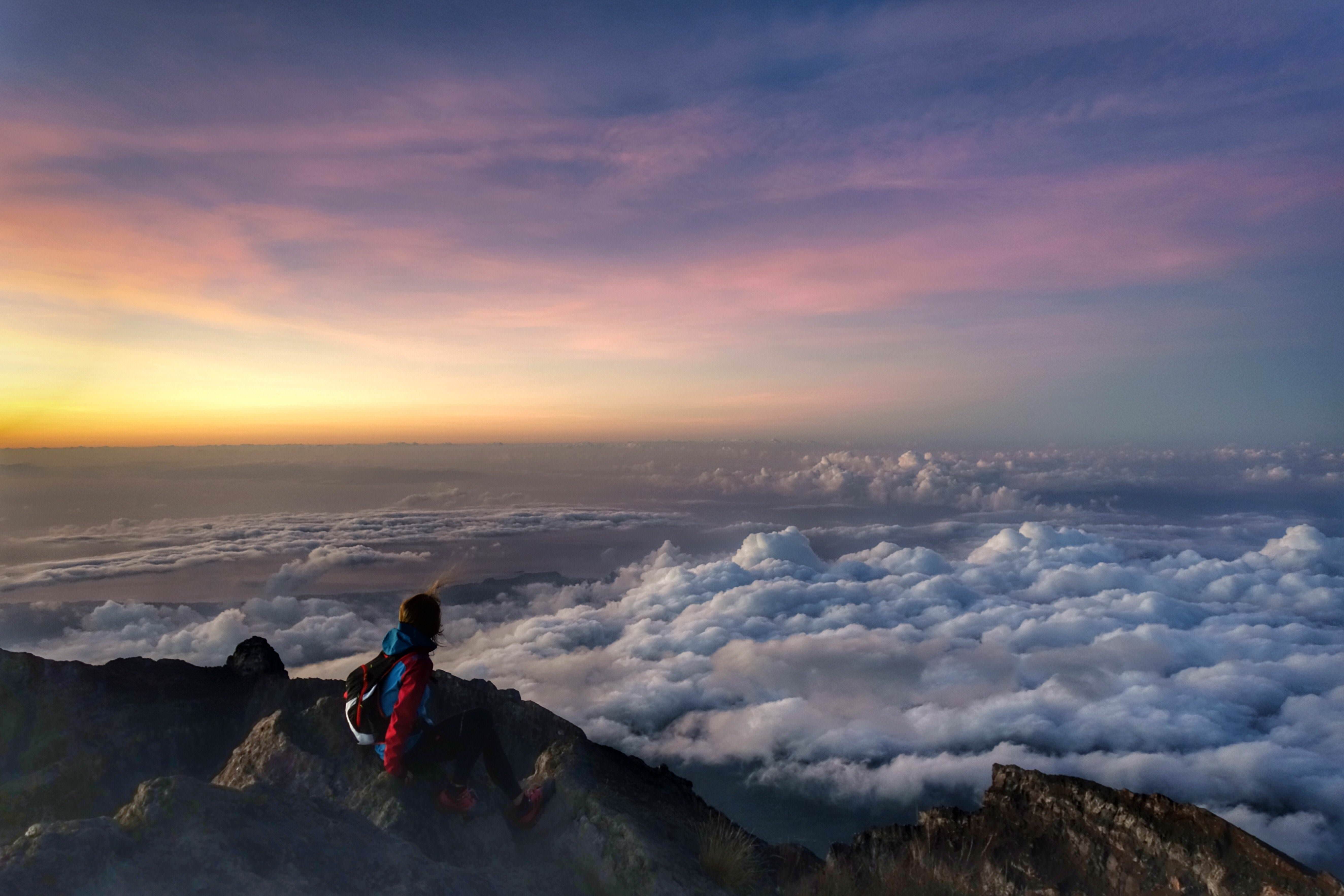 我选的是pasar agung,当时是觉得如果抗不下来就去火山口看日出不勉强登顶。路线起点是在pasar agung的神庙,向导做了简单的祈祷后开始攀登。我当时到神庙的时候夜空晴朗,银河悬挂在神庙之上非常惊心动魄的惊艳(然而没带脚架锤地)。最开始是很好走的林中泥土路,上升坡度不算大不会太累。大概一个小时上升三四百米之后开始有火山石,需要注意脚下。到2300-2400米左右有一个checkpoint可以决定去山顶还是低一点的火山口,前者差不多1个半小时,后者3个小时的路程。从这里开始就基本用不上登山杖需要手脚并用的攀爬,有些地方很陡而且险,一旦踩空后果不堪设想。另外路上的火山石有些会滑动,找落脚点的时候需要非常小心。这段路虽然是连续上升但实际上是沿着火山口斜着横穿到另一侧,石头上有一些标记但如果没有向导也非常容易走岔。大概三个小时后到达山脊,风大,但最后几十米就非常轻松了。上山我用了五个多小时,比我早一些的那队是4个小时,我个人觉得向导安排的6小时算挺宽松(对于有心理准备且经常运动的筒子来说)。