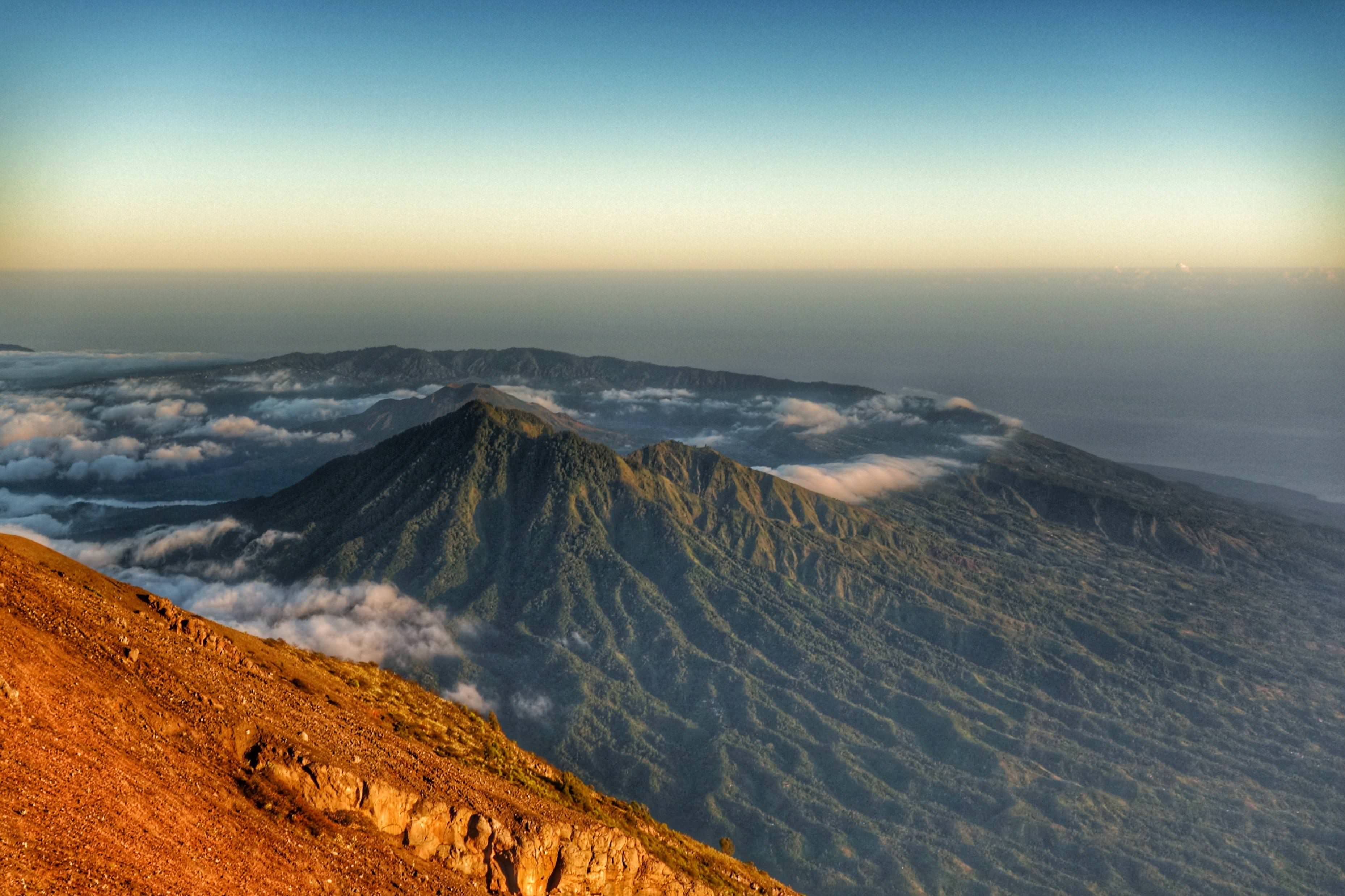 山顶和影锥山脊那条线路是传统从basekih到顶峰的路,我是从pasar agung出发最后沿左侧的斜坡上来的,两条线路最后在顶峰汇合