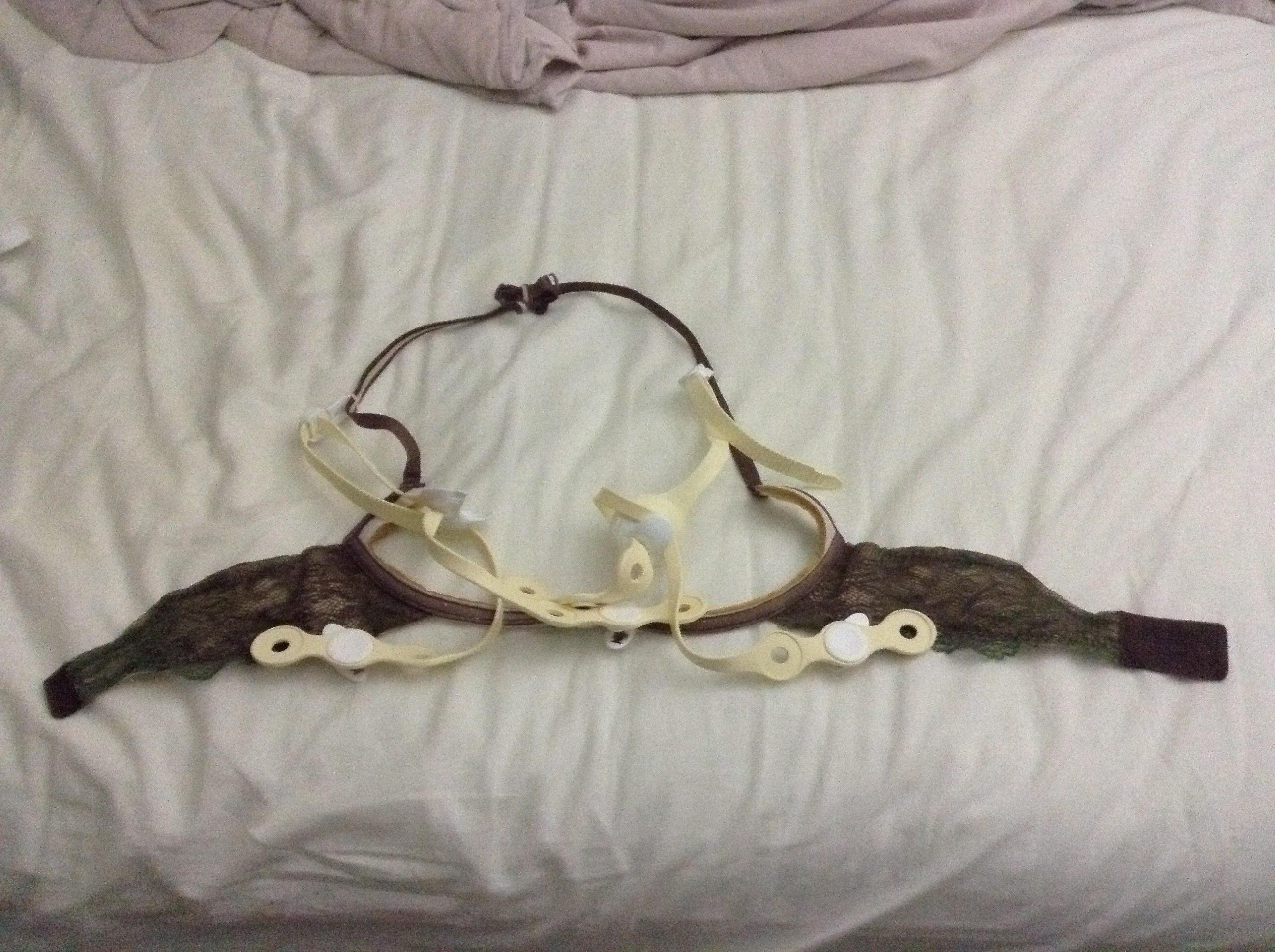 1. bra抽掉钢丝,剪掉所有覆盖胸部的部分