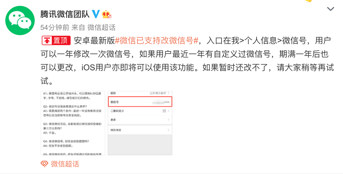 可以改微信号了。
