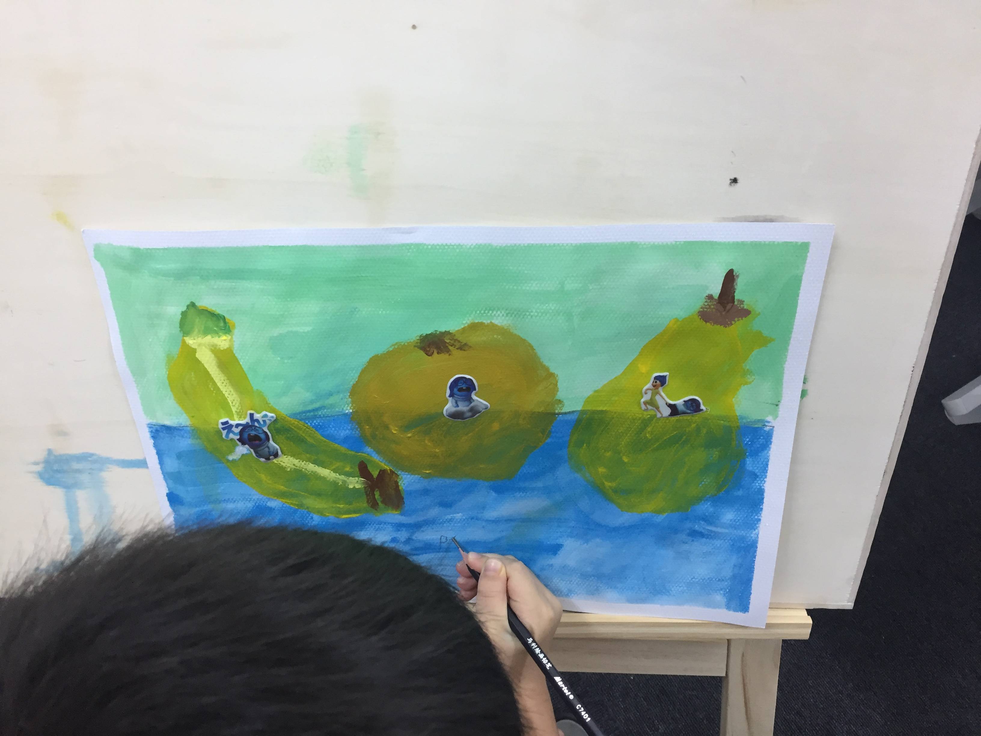 今天学习的是把背景涂满涂均匀,画基本的水果形状。我儿子画的是最均匀的那个,平时就喜欢涂色