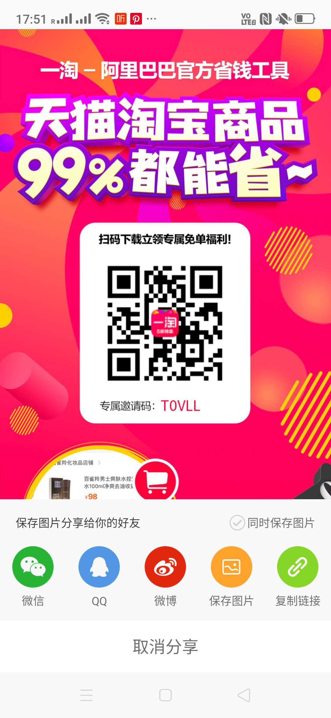 或者下载一淘输入本人的邀请码:T0VLL,