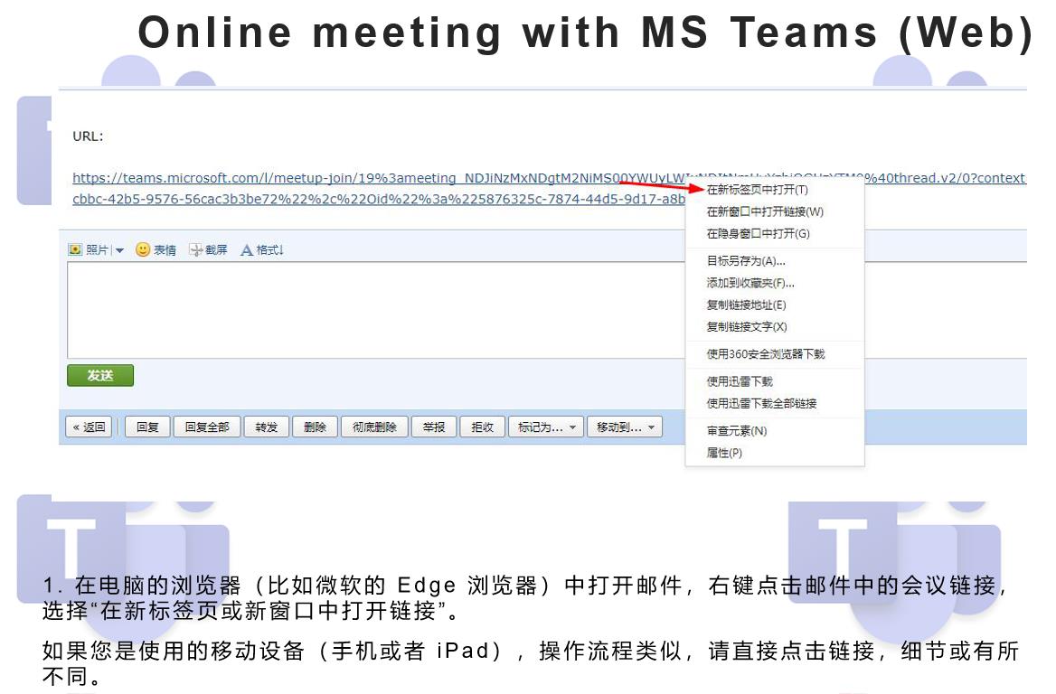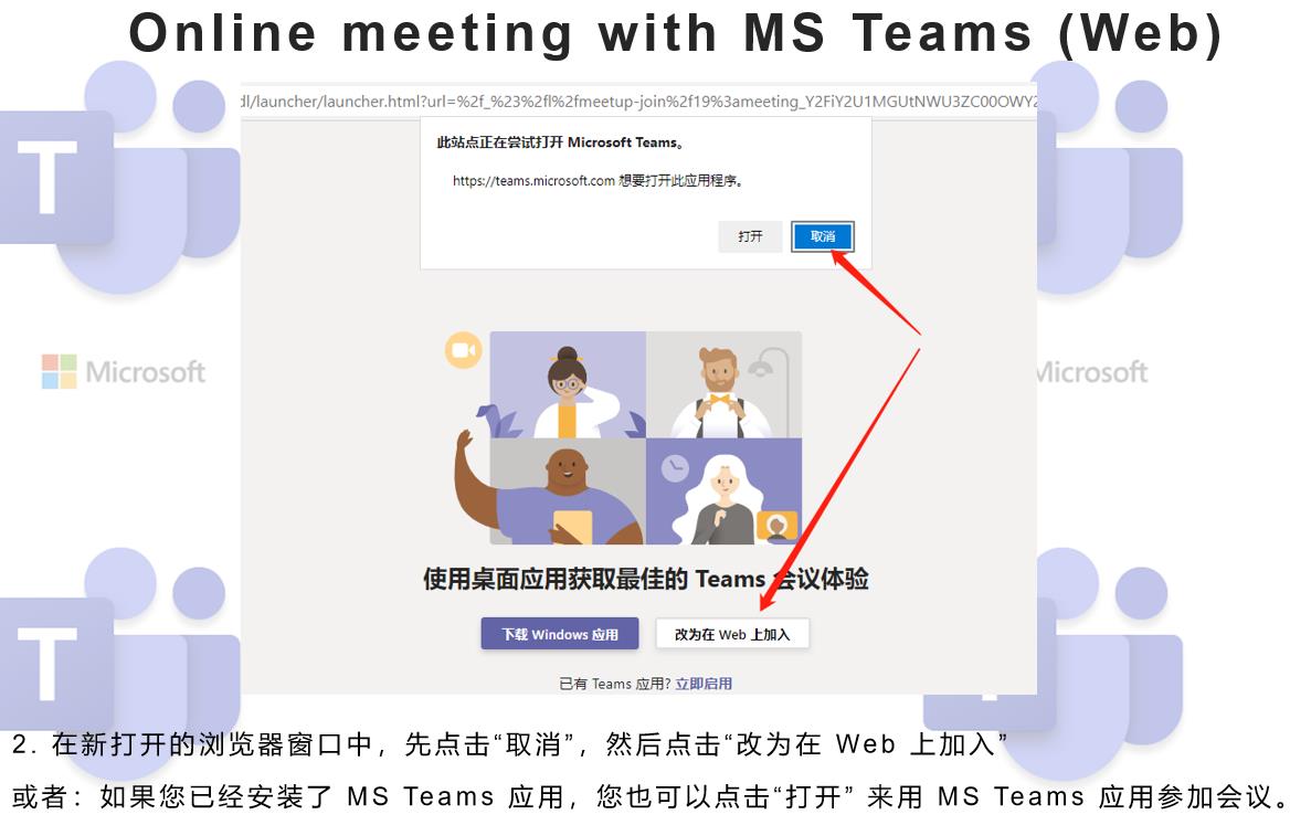 讲座用 Microsoft Teams 在线进行,参加者可以用台式电脑上的浏览器参加(不需要安装 App),如果用移动设备,则需要下载 MS Teams App。