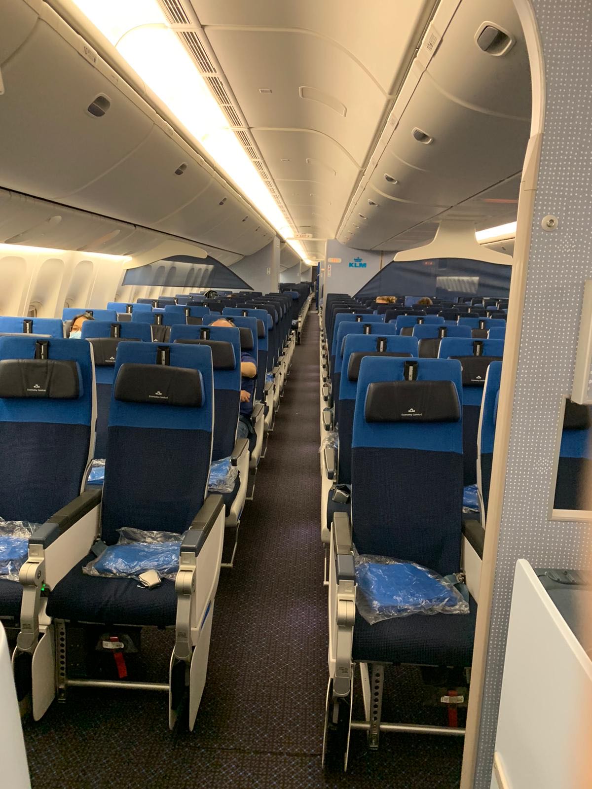 去欧洲真的不要太容易朋友登机后发来的 你看看klm每周三班 几乎都是空的
