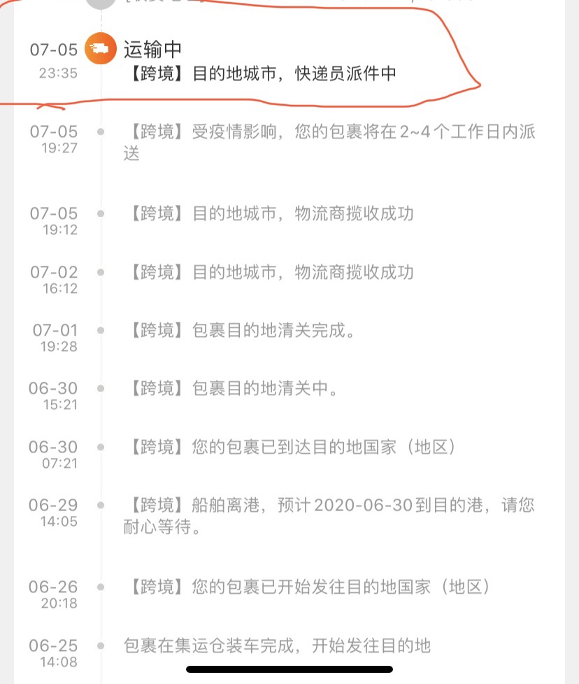 我赶脚他们是有kpi的 所以哪怕没送货也把状态改成送货中我最近几次海运都是在现实送货之后两三天收到的 估计你的应该就是这两天了