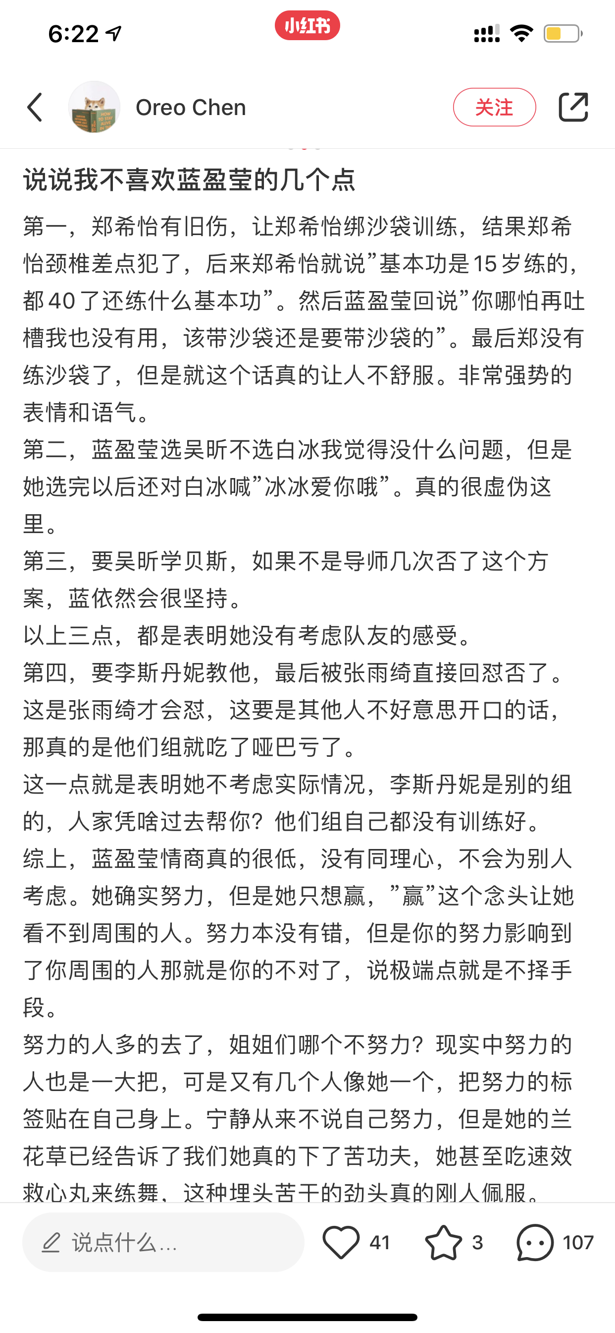 而且发现凡是喜欢她转而骂人的都是一个套路,就是选择性无视!偷换概念!不讲道理!再重申最让我难受的不是她外表是她的个性人品,你自己个人想怎么狼性都行问题是她压根不尊重队友的感受,连跟她最好的黄龄都说她笑不出来了,然鹅lyy赶紧打哈哈给压下去了,正常难道不是关心一下朋友吗?问问为什么笑不出来,是哪里做的不对吗?但她从头到尾都没有同理心这件事被她说得超级风轻云淡,现实里我最恶心这样的人,什么事情只考虑自己不管别人,实力没有就喜欢瞎咋呼,喊口号喊得最积极,实际上任何才艺都是属于入门级而已,太浮躁了 -