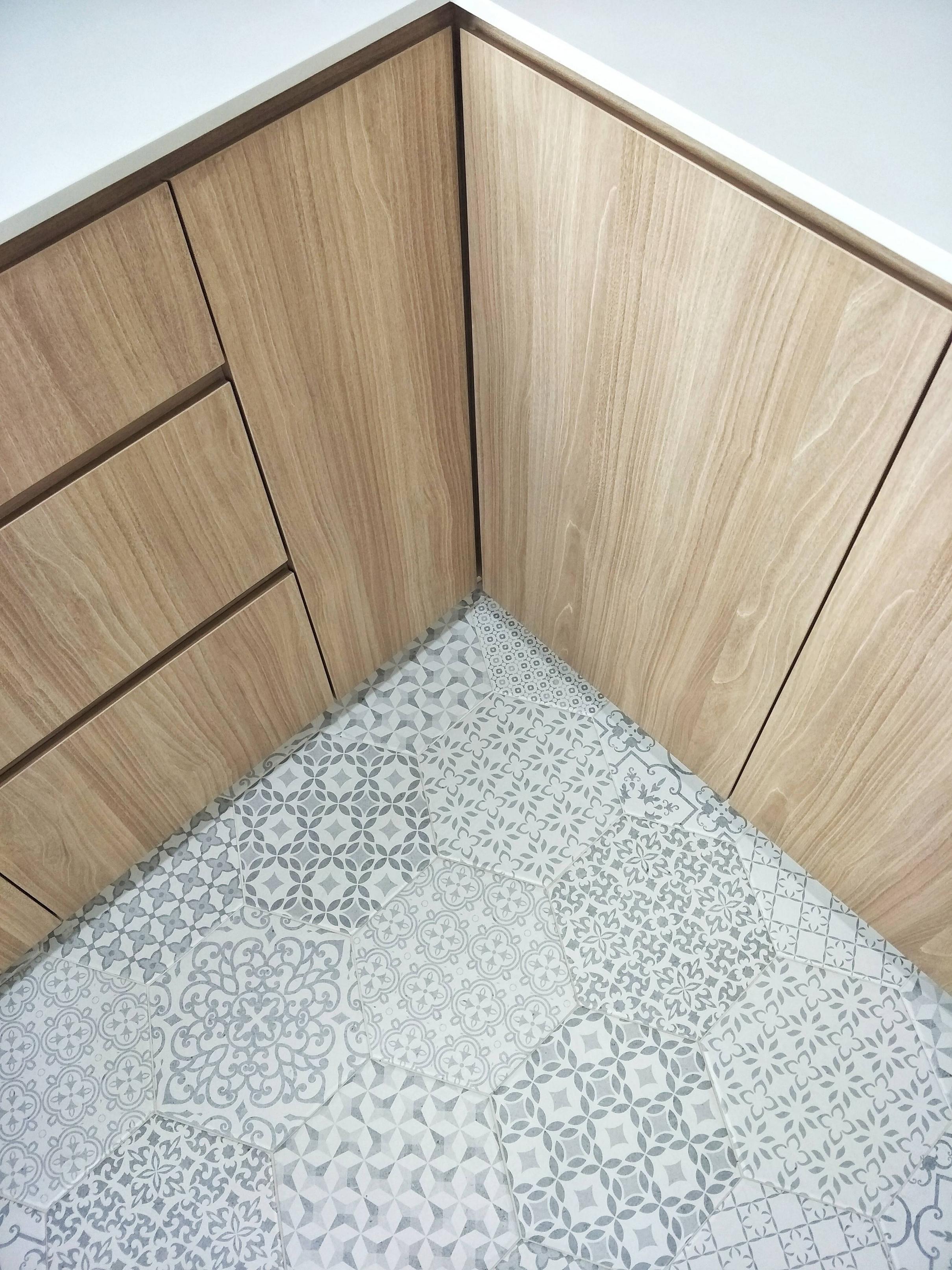 厨房厕所全敲重做,房间和厅的地板就不想敲了,直接铺了vinyl . -