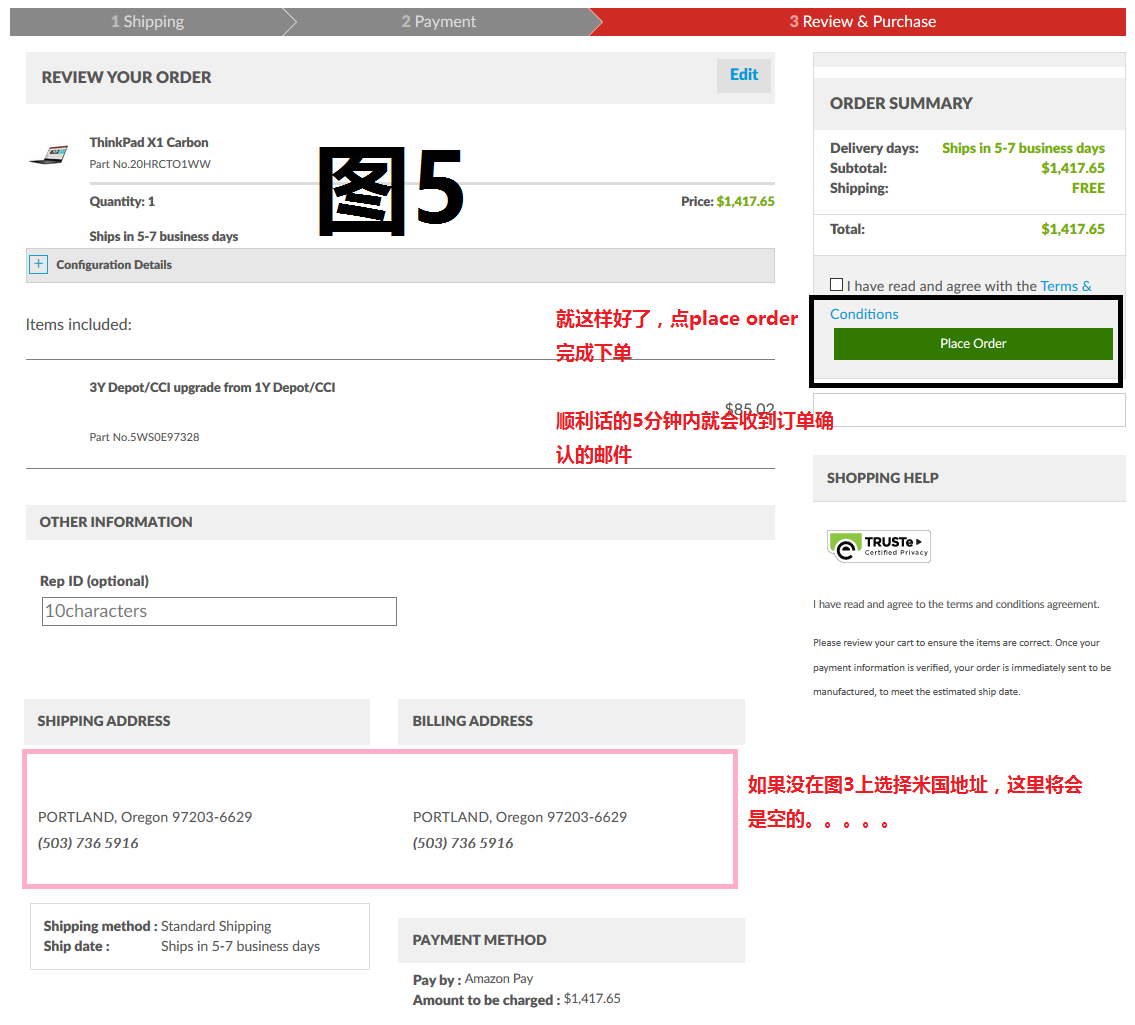 付款用AMAZON PAY, 联想无从知道是什么卡,安全的很地址的话,如果你留的是VPOST,而且写了SG-XXXX-XXXX的话应该可以收到