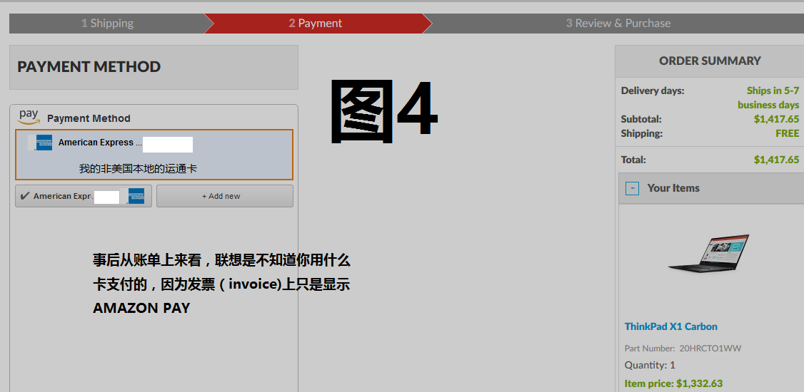 如果我们用AMAZON PAY check out的话,联想是没办法知晓你使用什么卡付款的~~