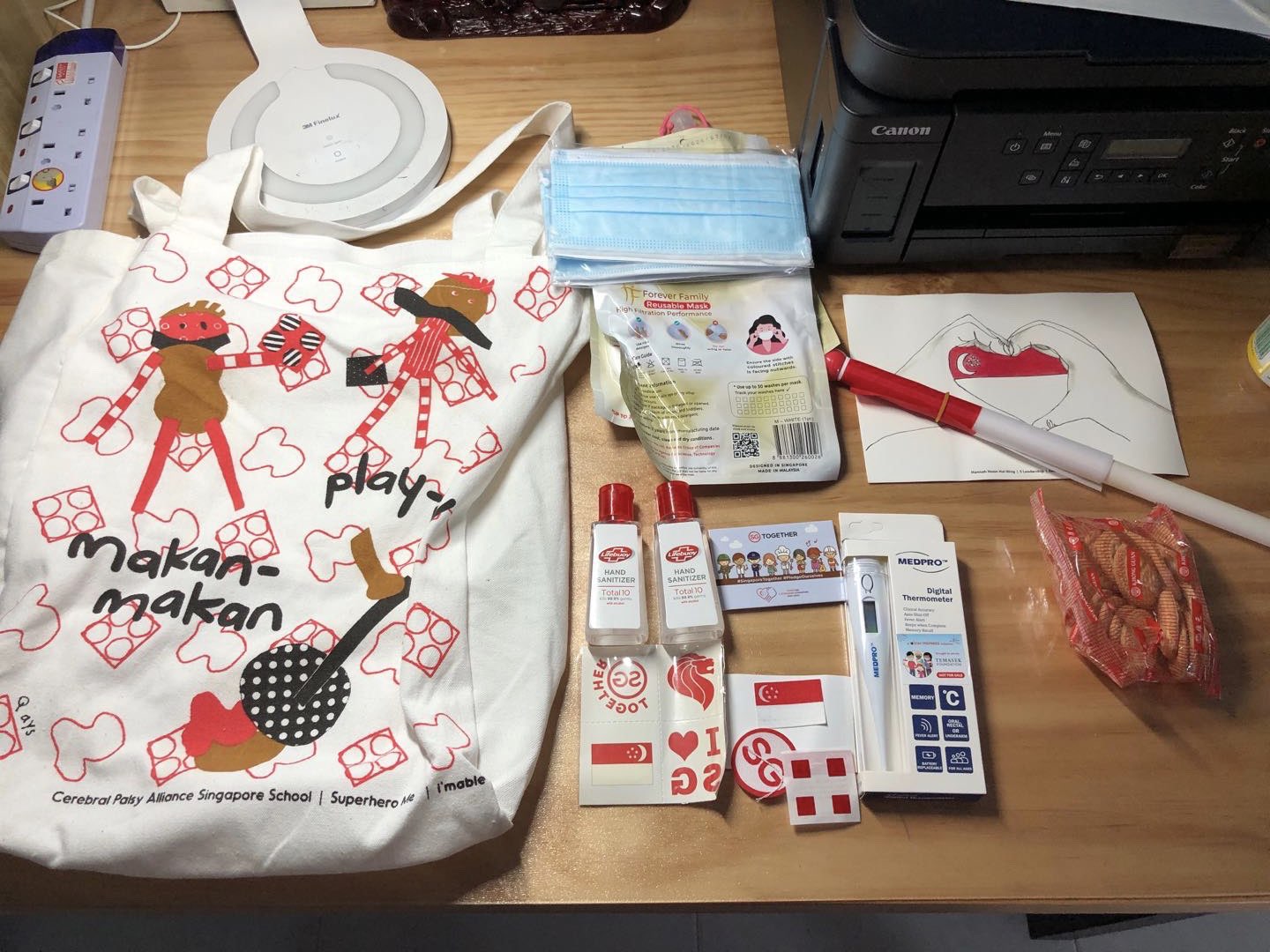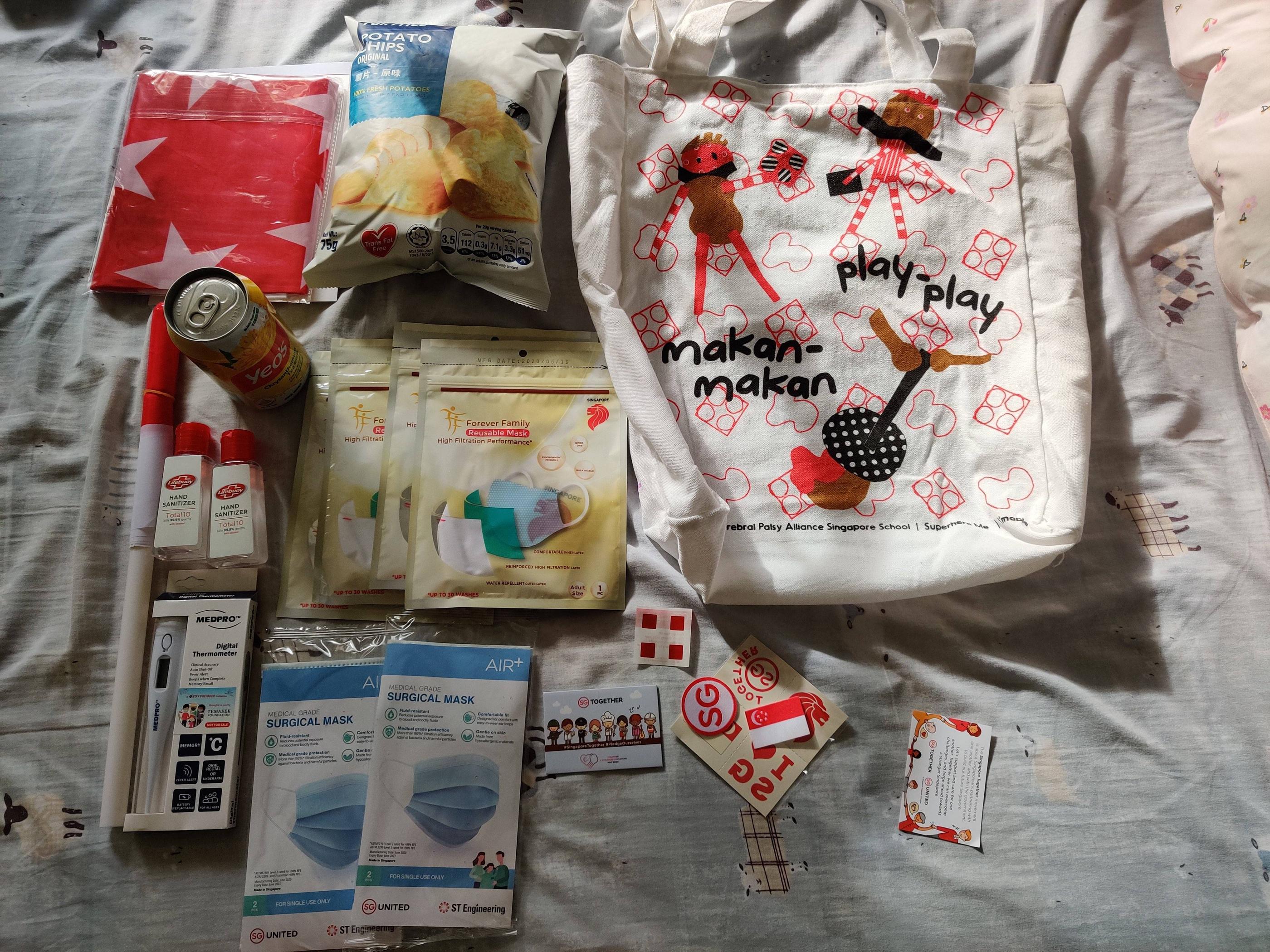 领到的是组屋图案,简洁大方里面是饼干不是薯片,儿子表示很失望