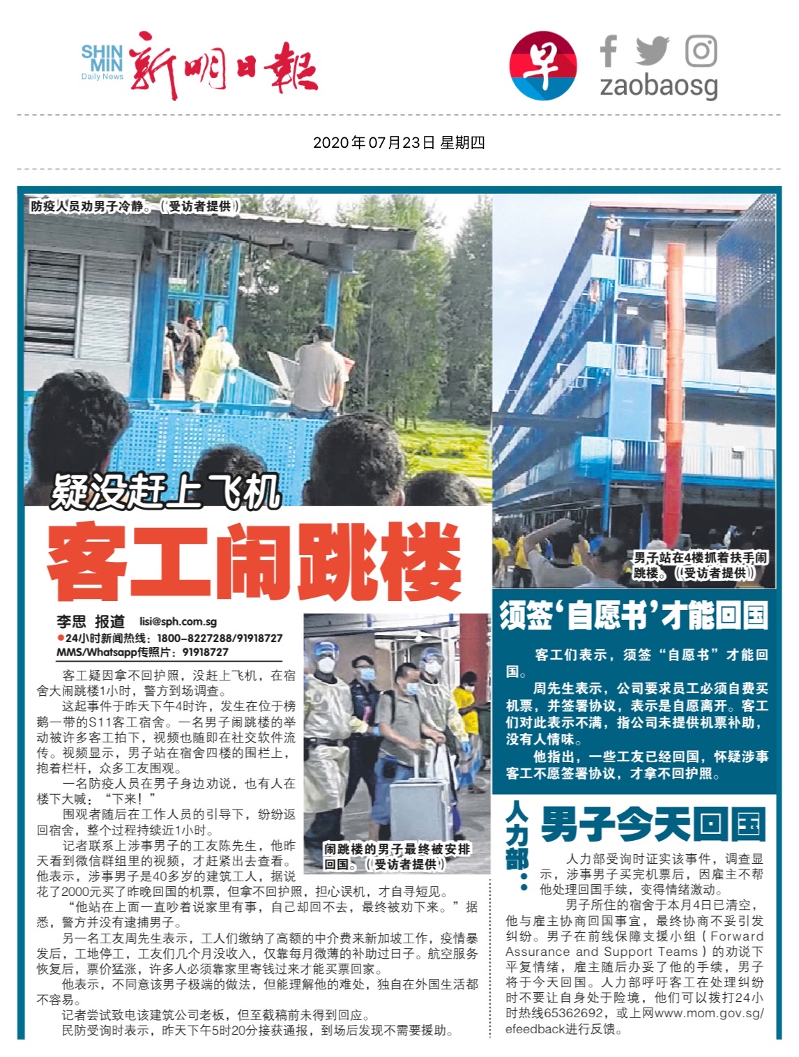 这个死亡病例不知道是怎么回事,但上次说的羊群效应似乎印证了,的确多了一个中国工人在宿舍威胁跳楼争取早日回国。大环境就这样,大家都要忍让,做好自己的情绪管理。