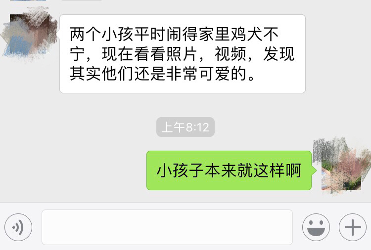 同理~老公出国几天,今早给我发了以下几句话~平时被孩子烦的时候叫的声音不比我d小~