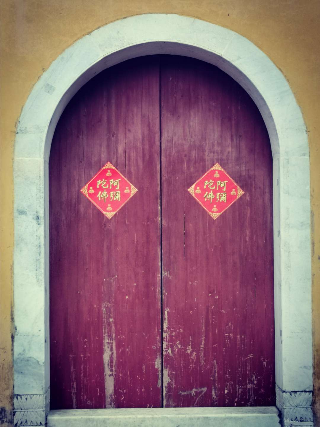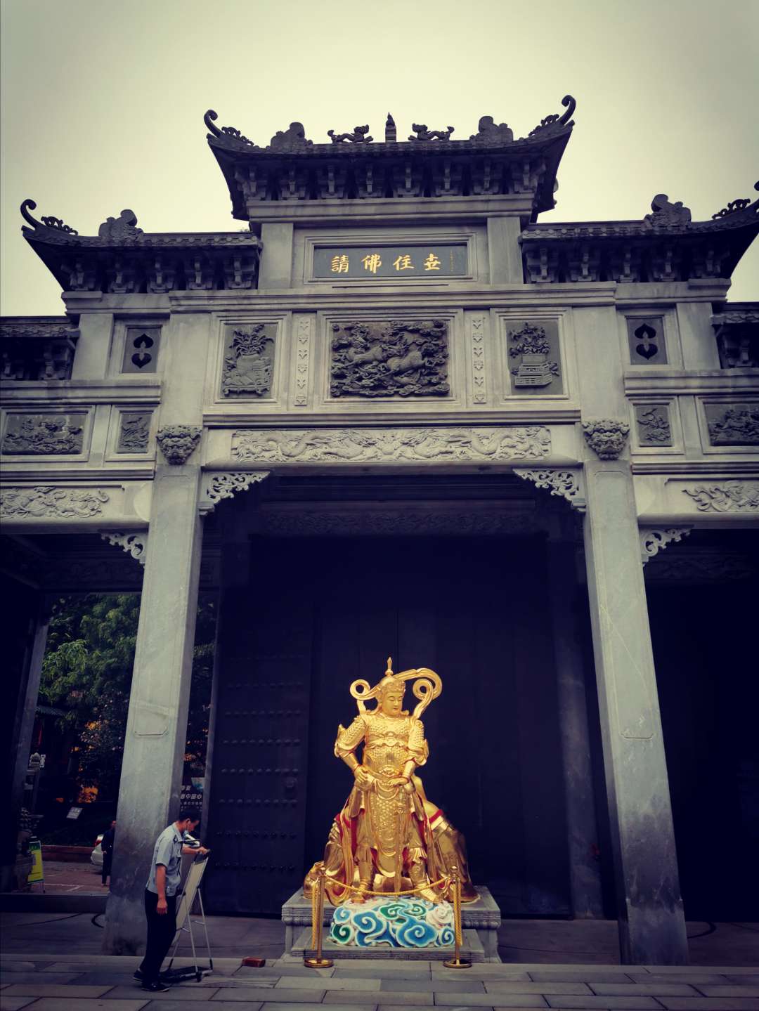 请佛往世黄昏中,我在山寺门口看到这座金色的韦陀,心生敬畏。