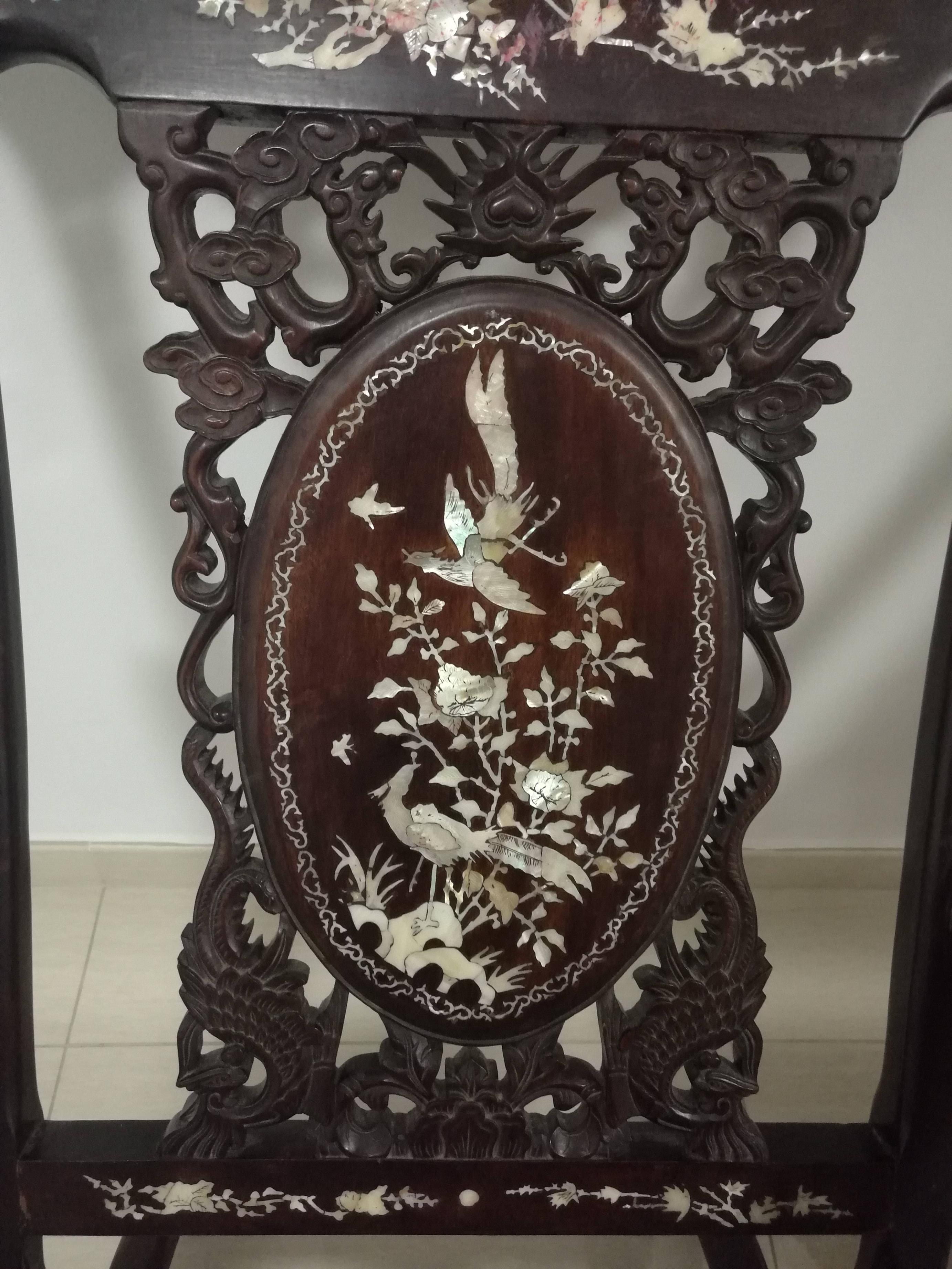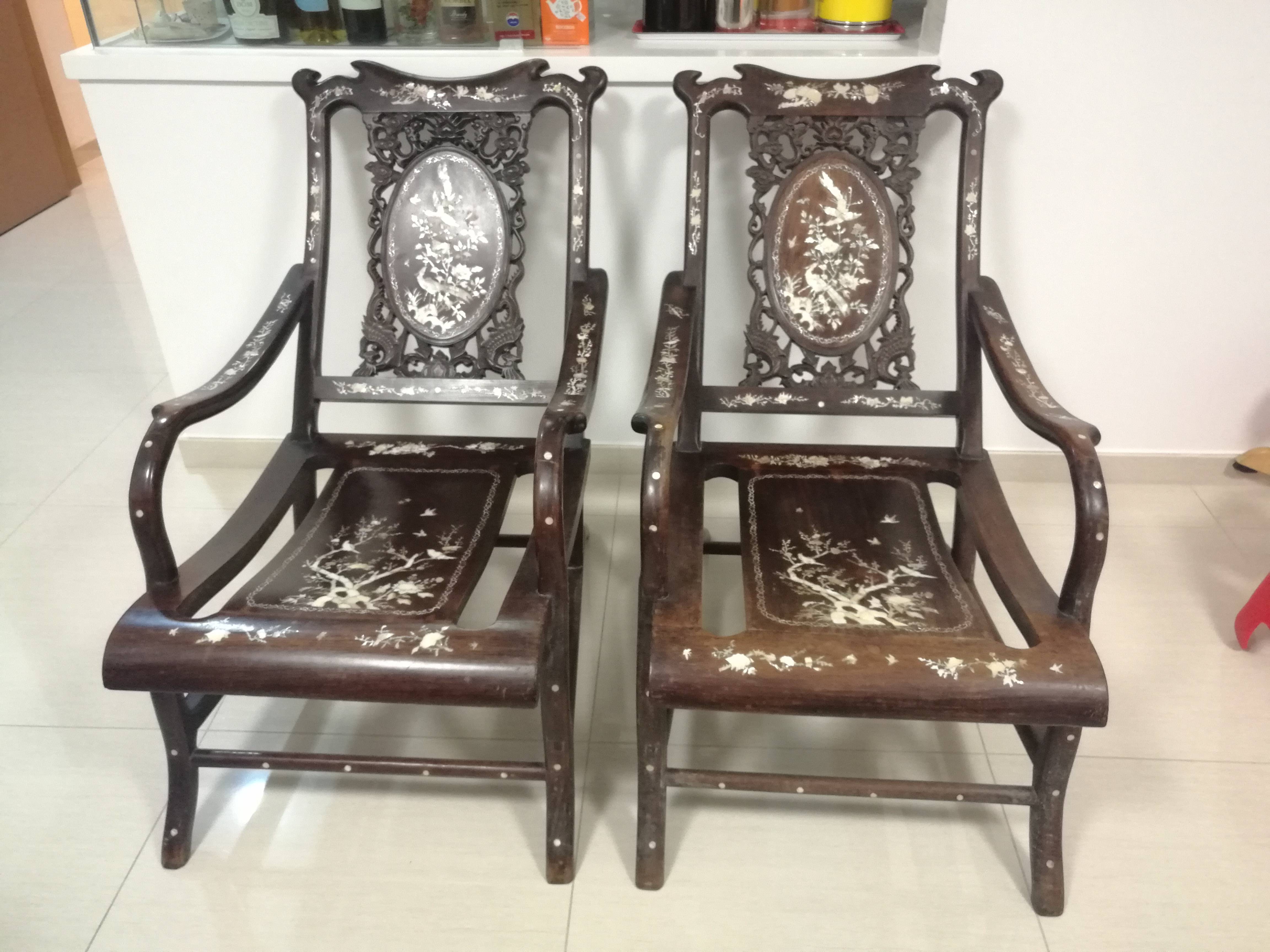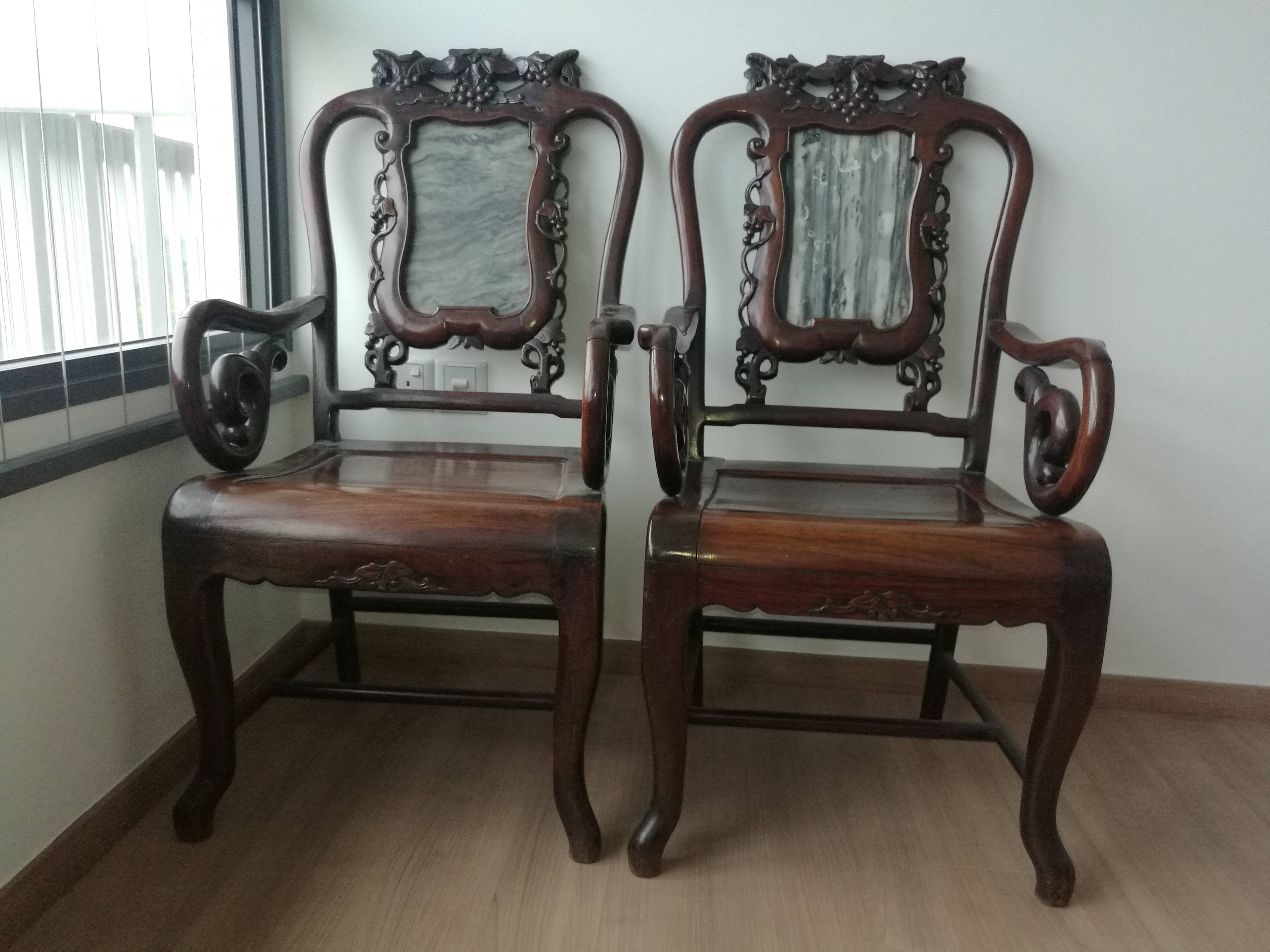 两张类似,但不是一对。这边不少老牌会馆里面,比如潮州人的醉花林,里面还有这样的椅子。