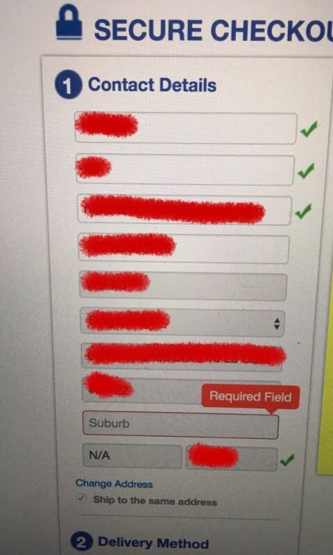 依旧不可以在cw的送货地址里看到了suburb这个,并填了,可以付款界面就是出不来,相当奇怪。。