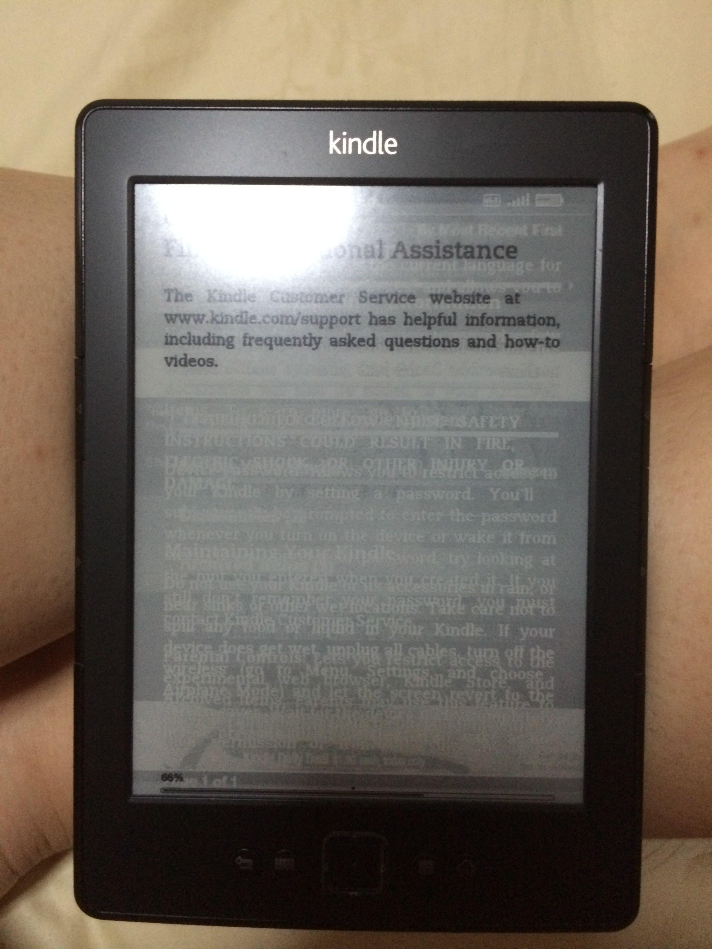 qilixiang1 • • 66416 次浏览刚买的kindle 屏幕是这样子的 可以看到前一页的字 是正常的吗 还是坏掉了 请高手指教一下 谢谢