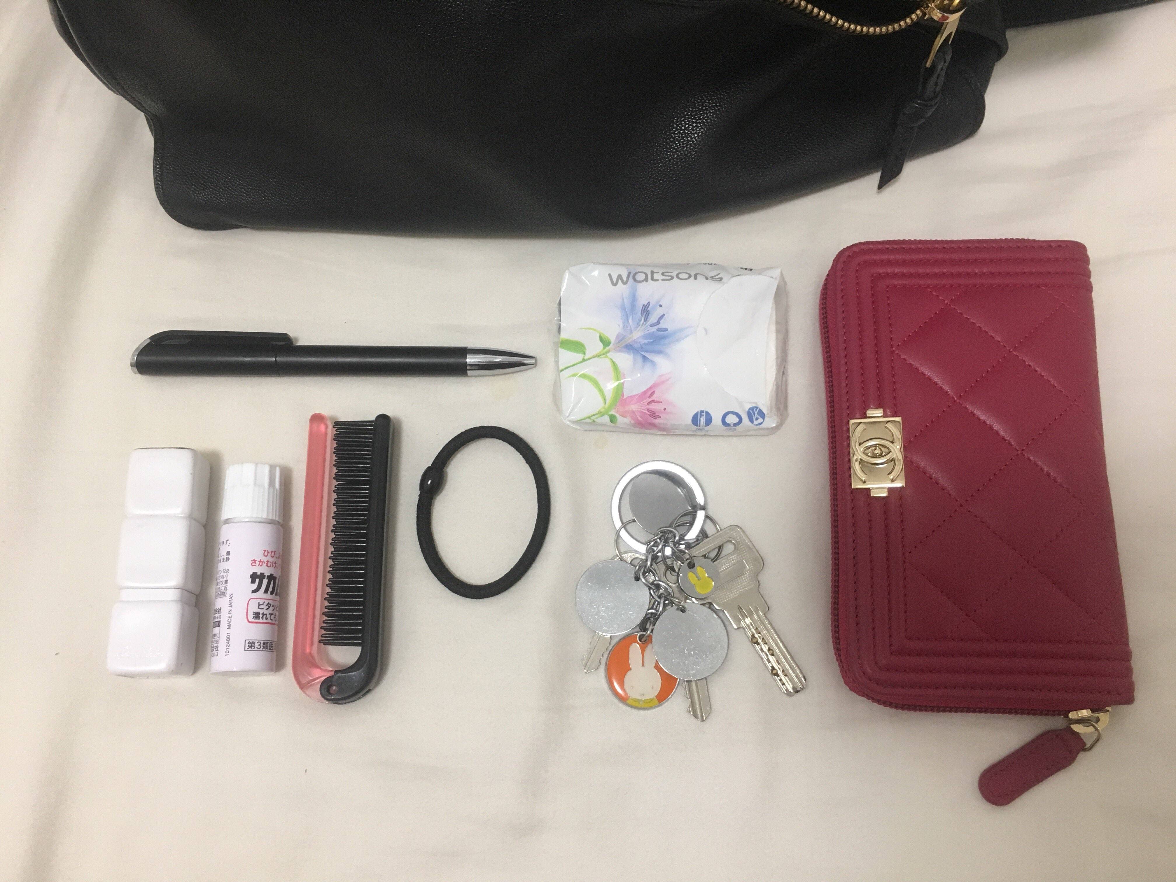 我包里东西也多,钱包,卡包(卡太多),网银TOKEN一个小包,公司门卡钥匙,纸巾,零钱包,2根唇膏,一根姨妈棒。