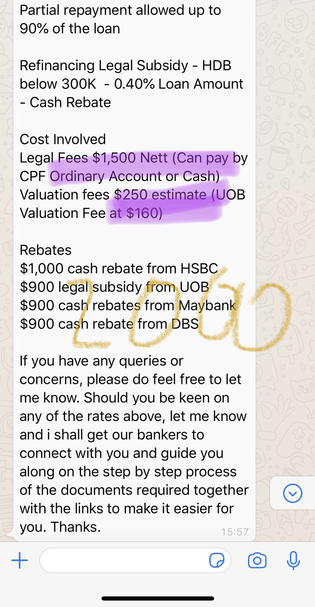 Refinancing Legal Subsidy - HDB below 300K - 0.40% Loan Amount - Cash Rebate
