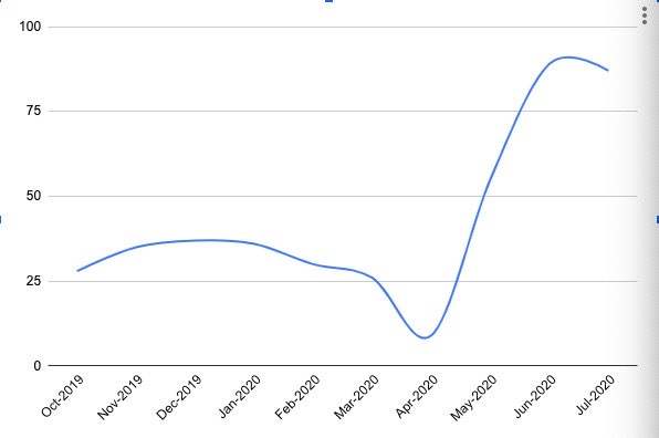 手贱 随手画了下疫情以来每月卖出数量看来促销是有作用 已经卖过半了