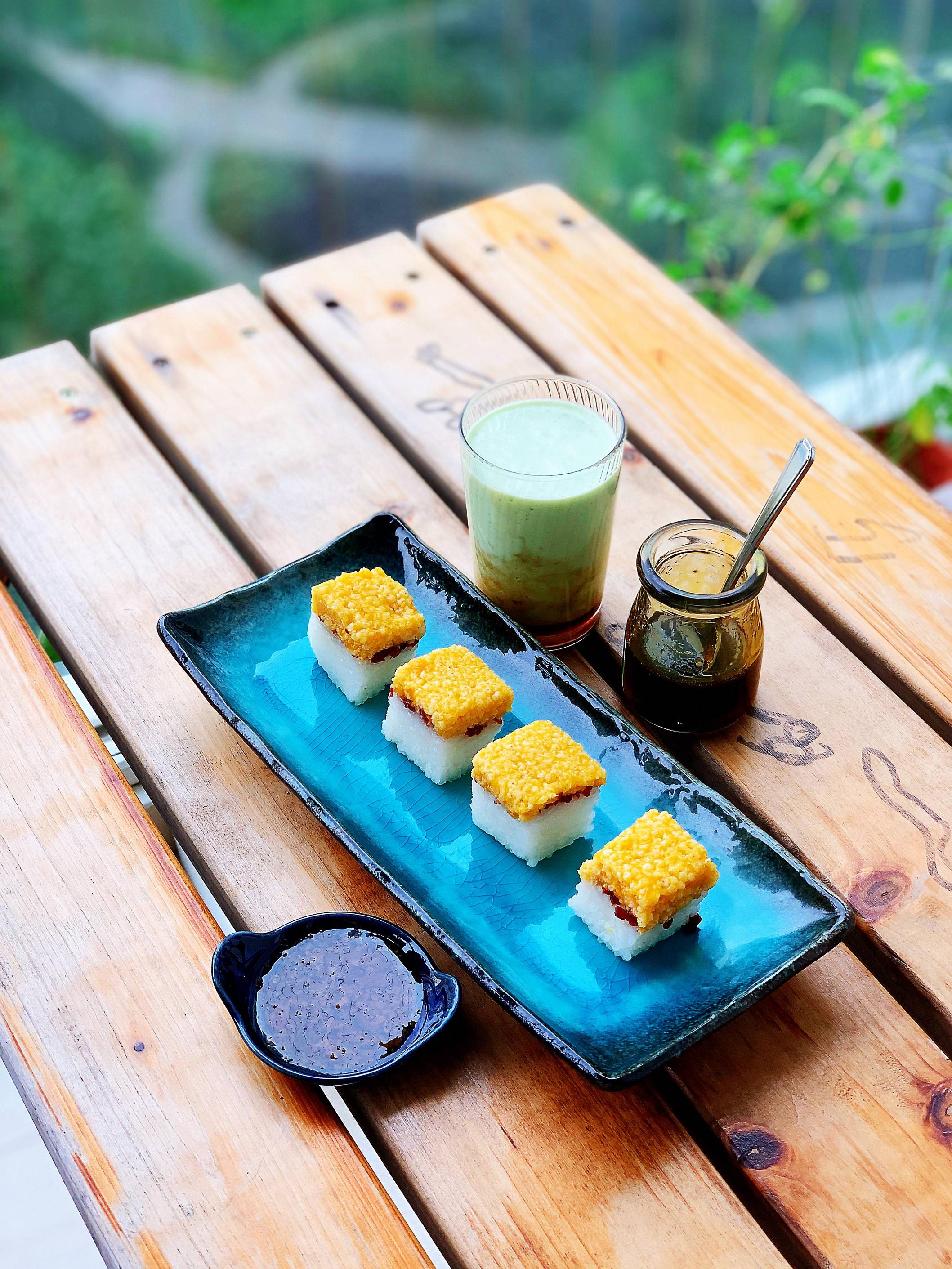 这个上面大黄米,下面糯米,中间有豆沙,上面是桂花酱。还不错蛮好吃的,在balestier road那家。